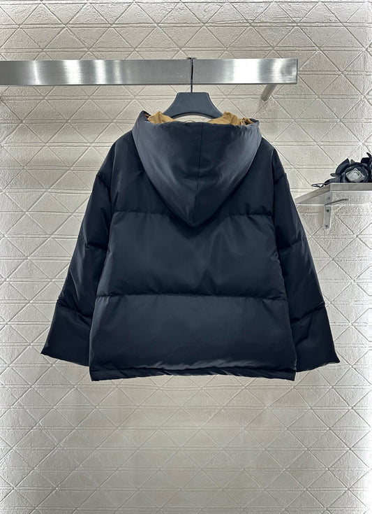 25 New drawstring waistband woolen down jacket(NAVY/BROWN)
