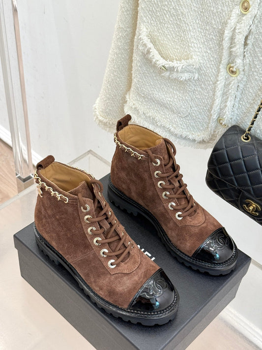 25 New product chain thick heel short boots
