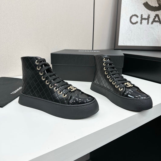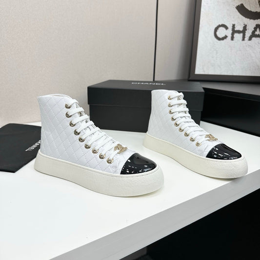 25 High top leather casual shoes(WHITE/BLACK)