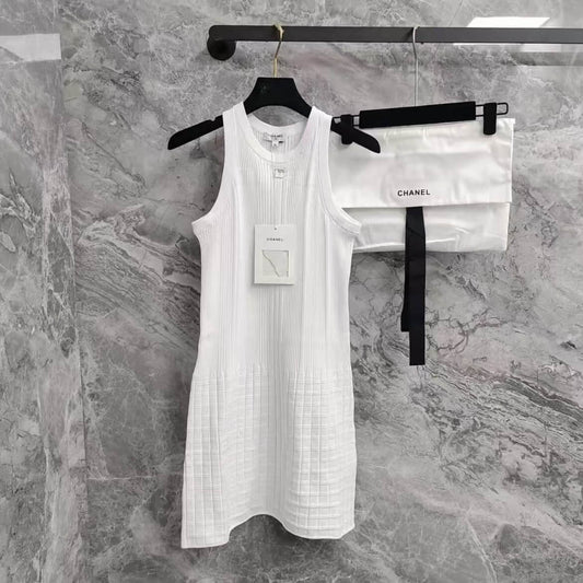 25 Summer new classic jacquard letter sleeveless knitted dress