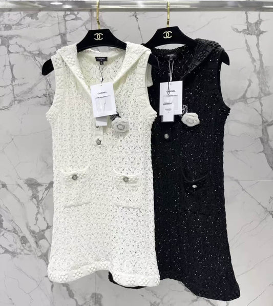 Colorful Diamond Brooch Round-Neck Vest Dress
