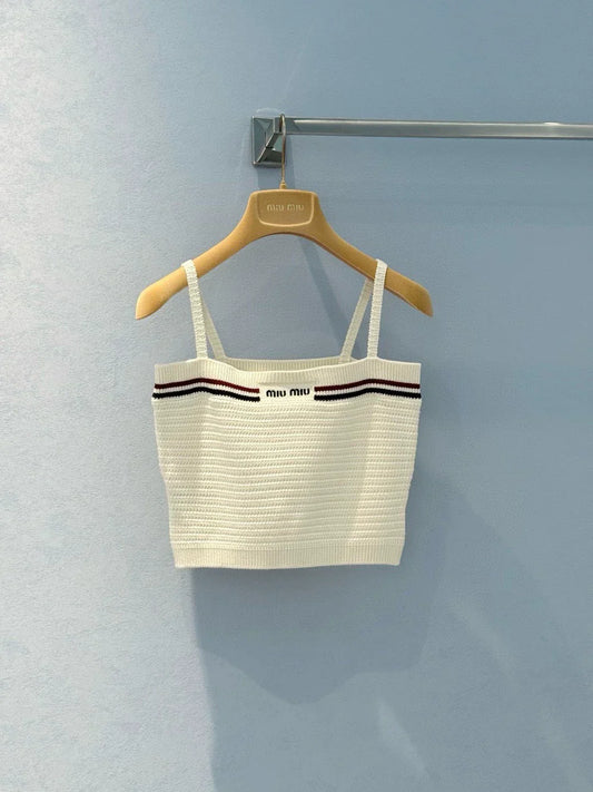 25 Summer new color matching ribbon pure cotton knitted suspender skirt suit