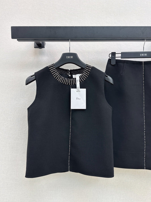 25 Summer new style dark pattern diamond tube top + skirt suit