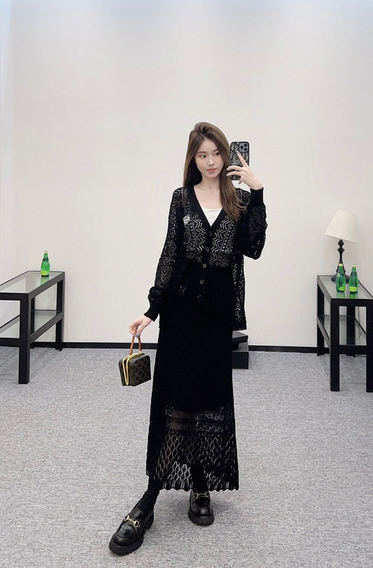 2025 new product Hollow cardigan and skirt set