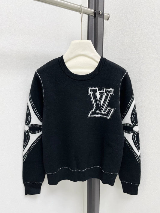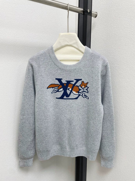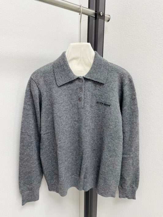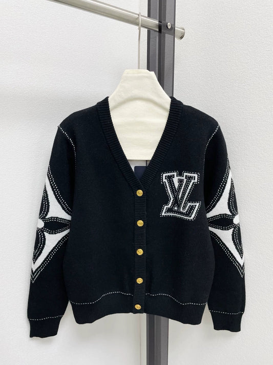 25 Vintage letter diamond grid round neck knitted wool cardigan
