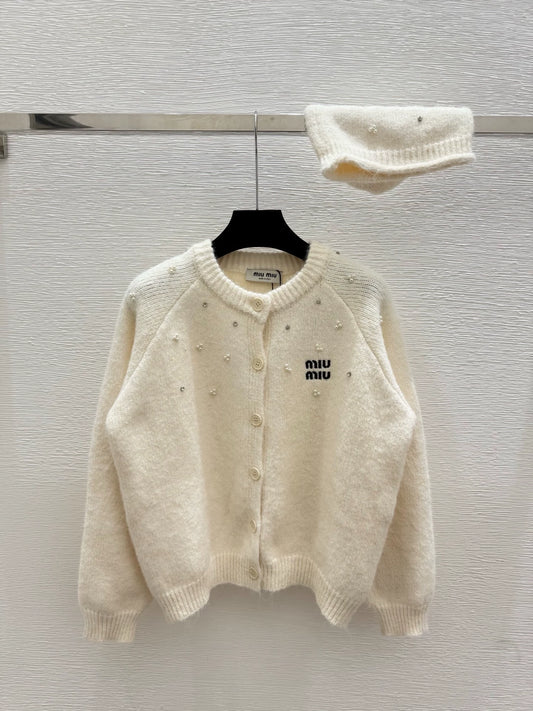 25fw Heavy Industry Bead Heart shaped V-neck Cardigan