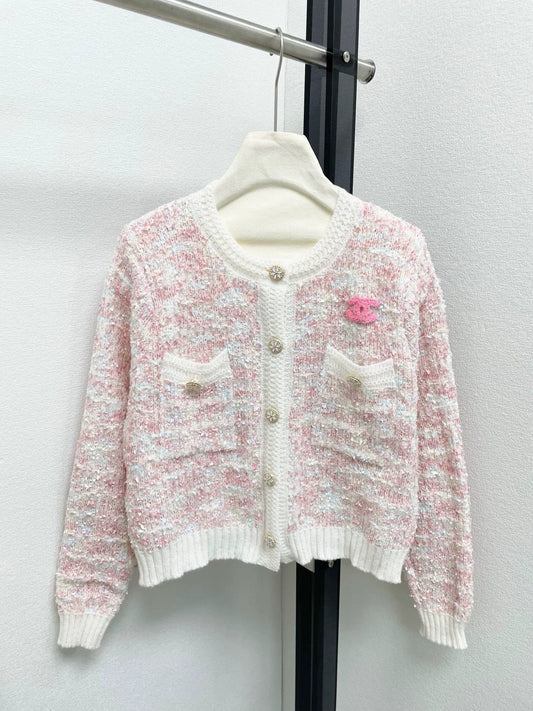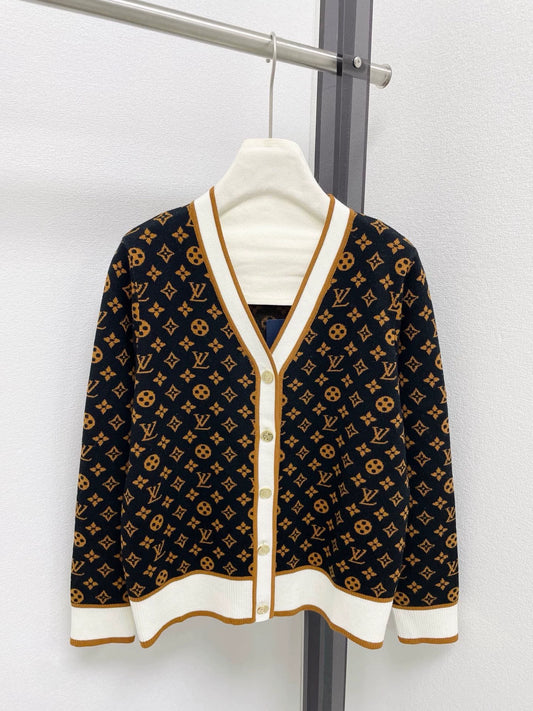 25fw V-neck Fried Dough Twists contrast knitted cardigan