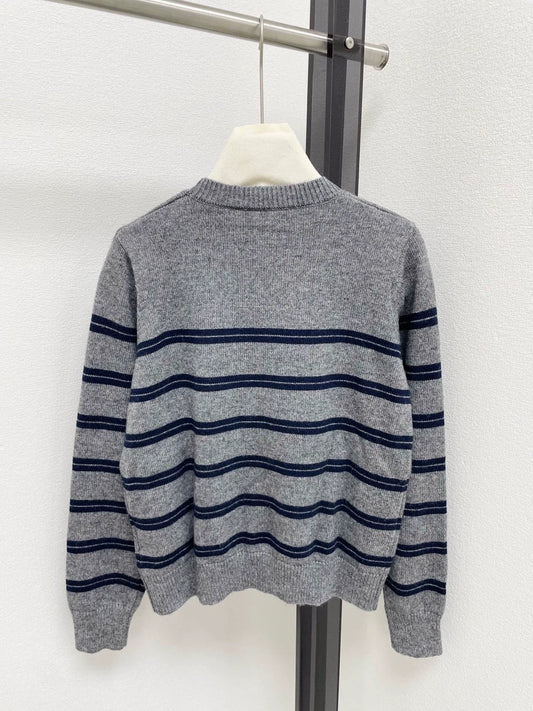 25 New Classic H-Pattern Decorative Pocket Wool Knitted Cardigan(GRAY/RED)