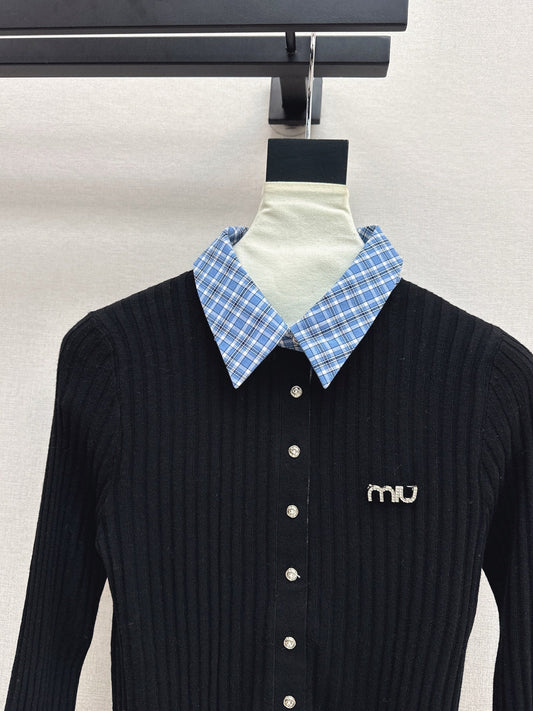 25 New plaid stitching fake two-piece sweater(WHITE/BLACK)