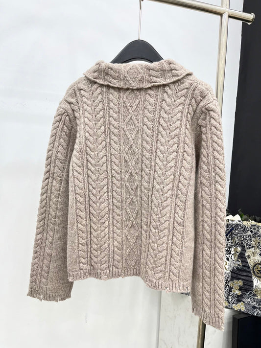 25 Fried Dough Twists hook lapel cashmere cardigan