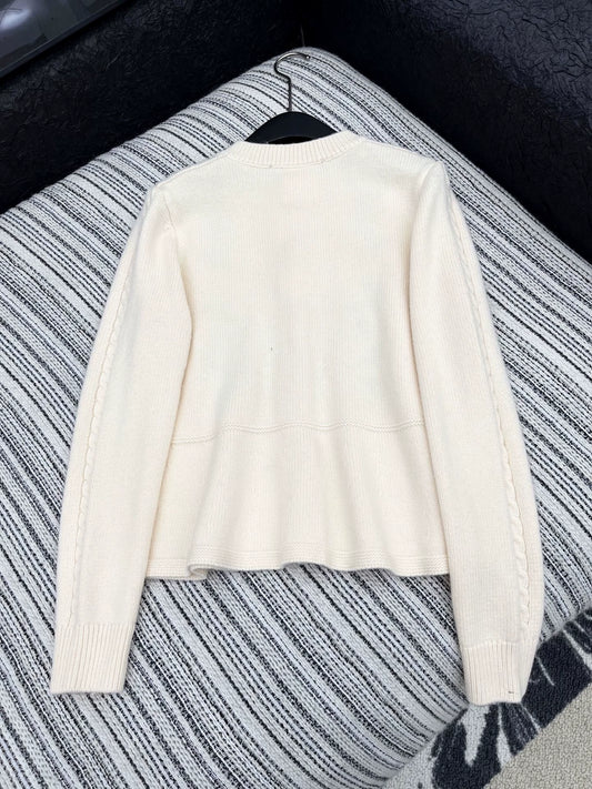 25 new contrast color jacquard pocket V-neck long sleeve long knitted jacket