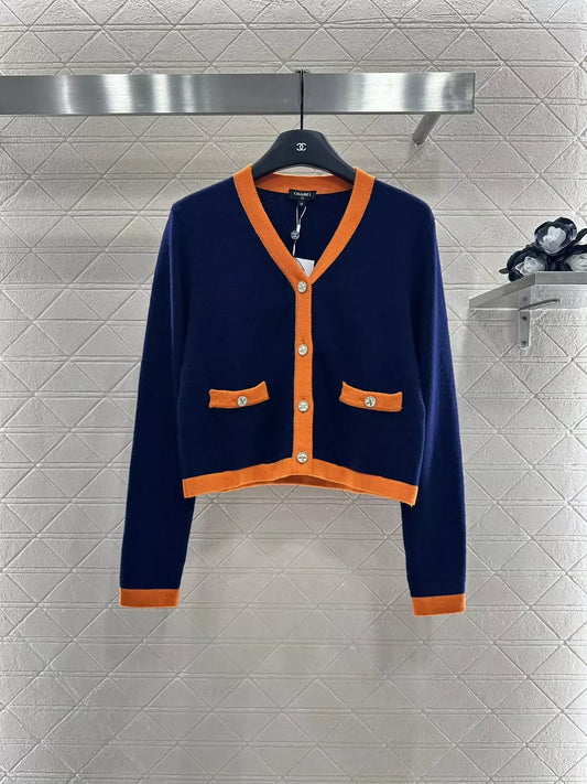 C 25 new plaid contrast color knitted V-neck cardigan ➕ round neck long sleeves