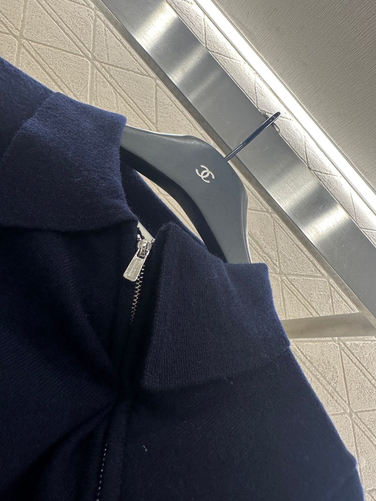 Woolen yarn weaving, delicate and soft, full of elasticity, exquisite lapel long sleeved design, oblique split zipper half open design, fine knit pattern throughout, full of elastic thread edging details, overflowing with artistic youth, making the retro college style strong, easy to handle for daily travel or gatherings.