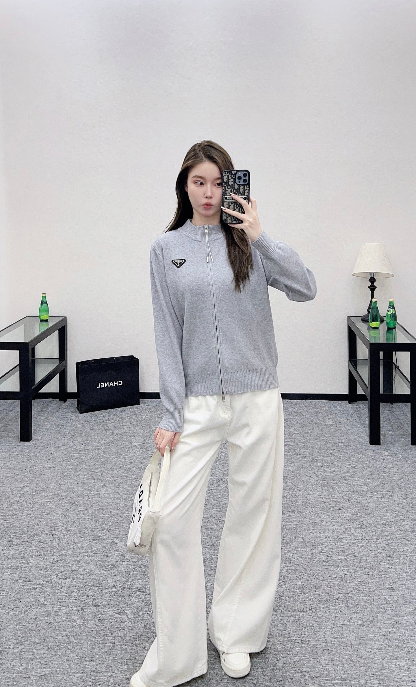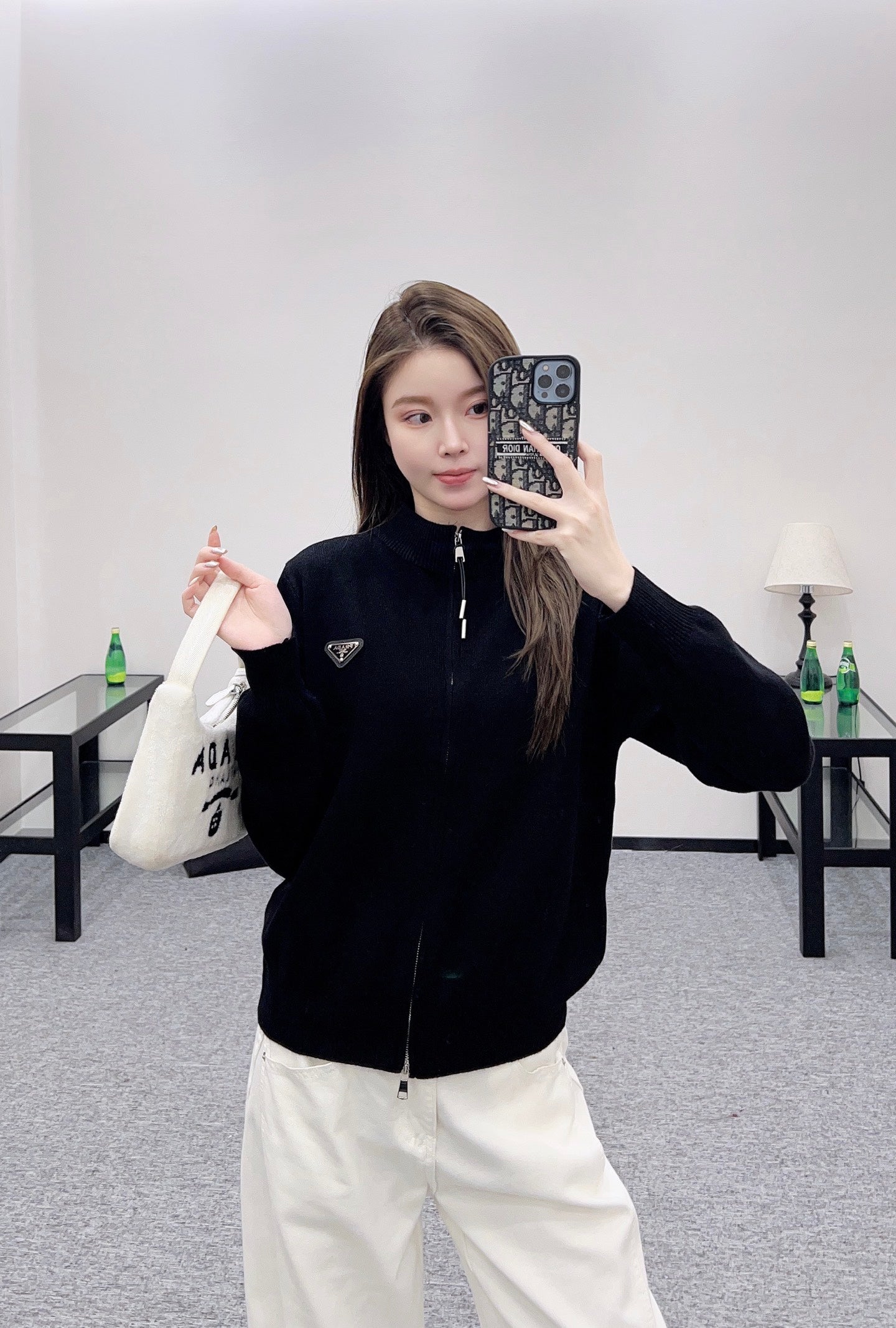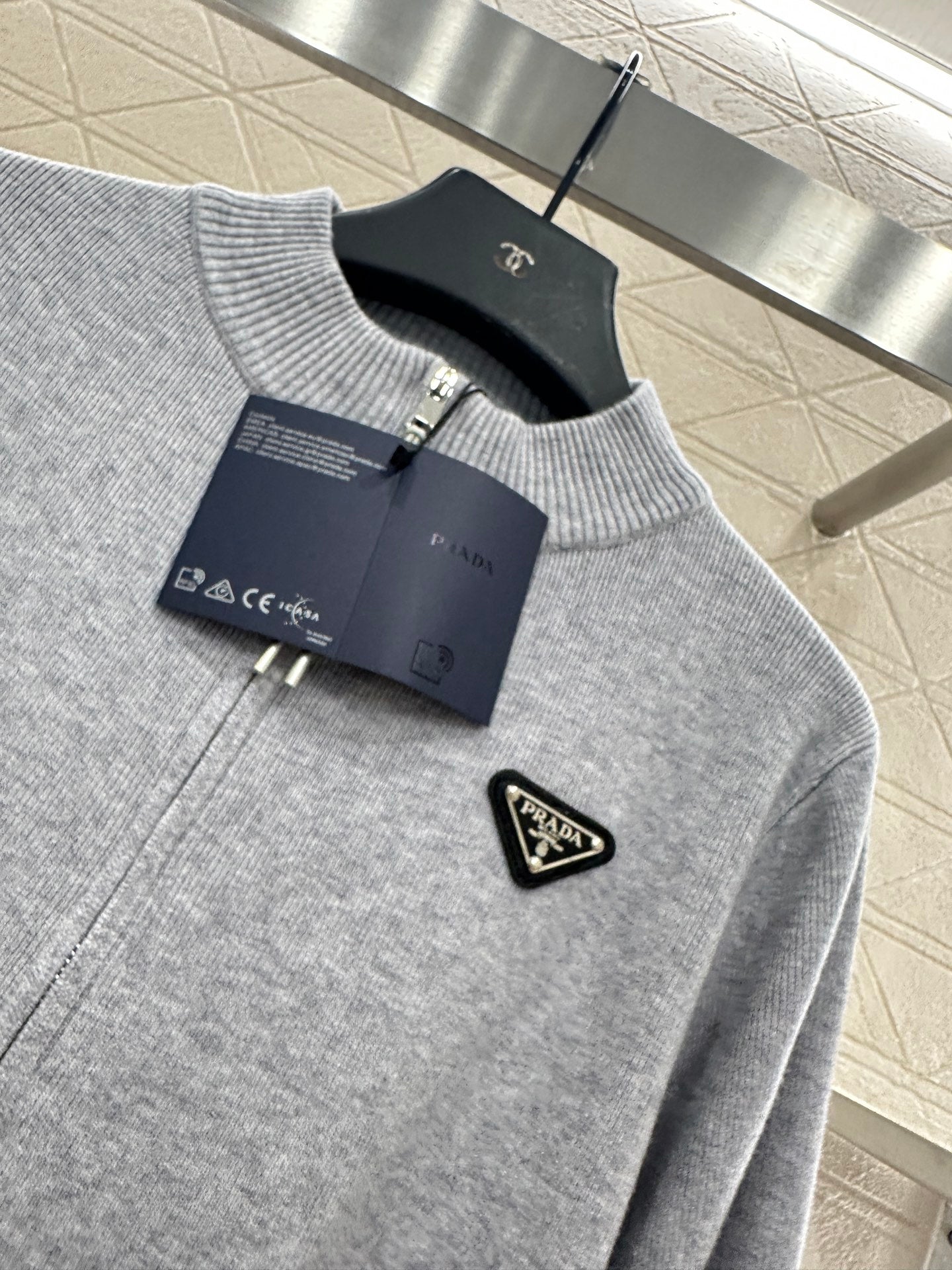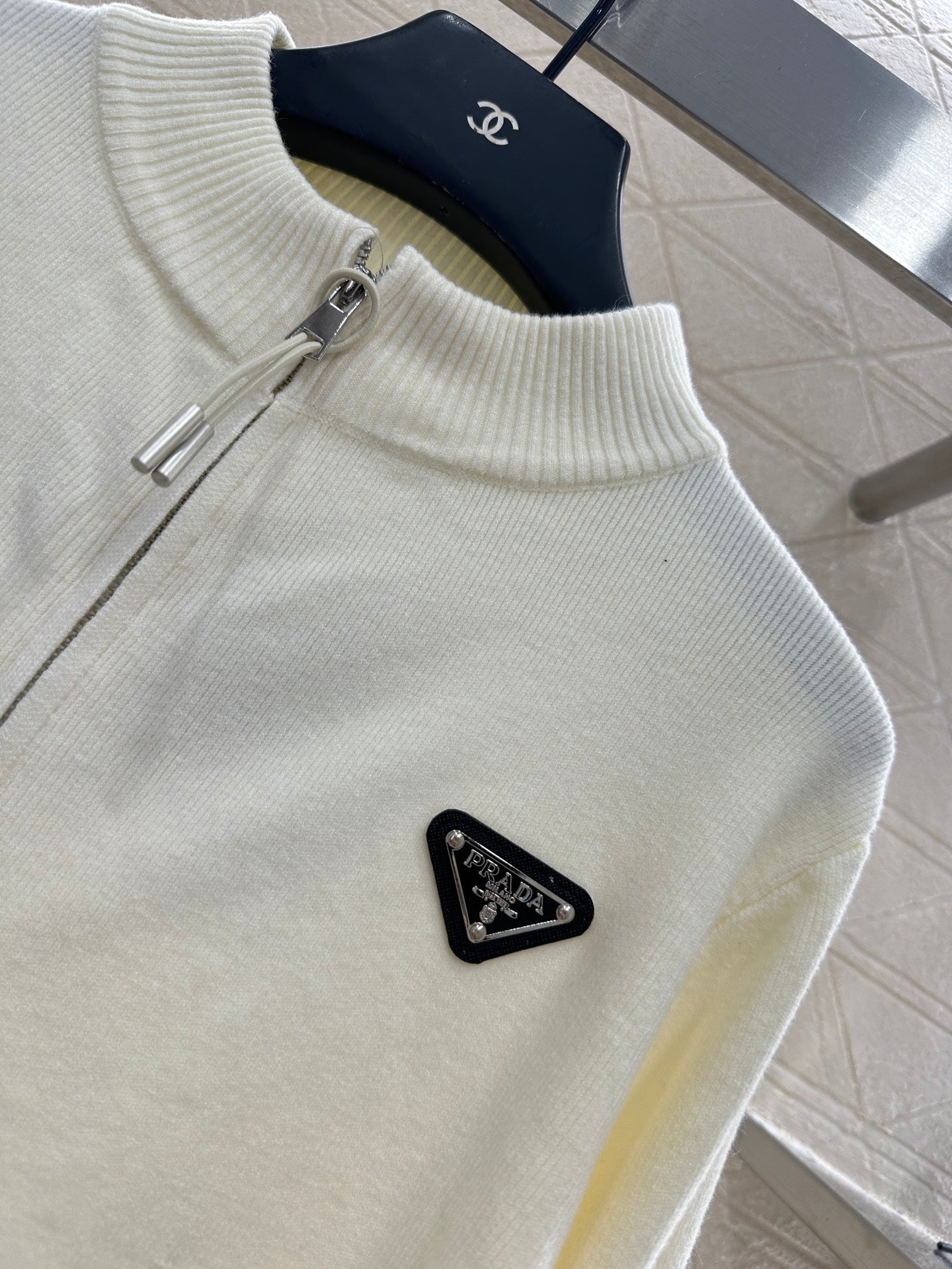 Weaved from cashmere and wool yarn, with a premium texture and comfortable softness, the zipper knitted jacket is tailored with unique details such as threaded grooves on the collar. The regular open zipper design is paired with a triangular metal logo on the chest, highlighting the brand's style. The slim fit creates a fashionable and slimming look, enhancing the texture of details. The style is not limited to body shape or age, and is a simple and versatile daily outfit