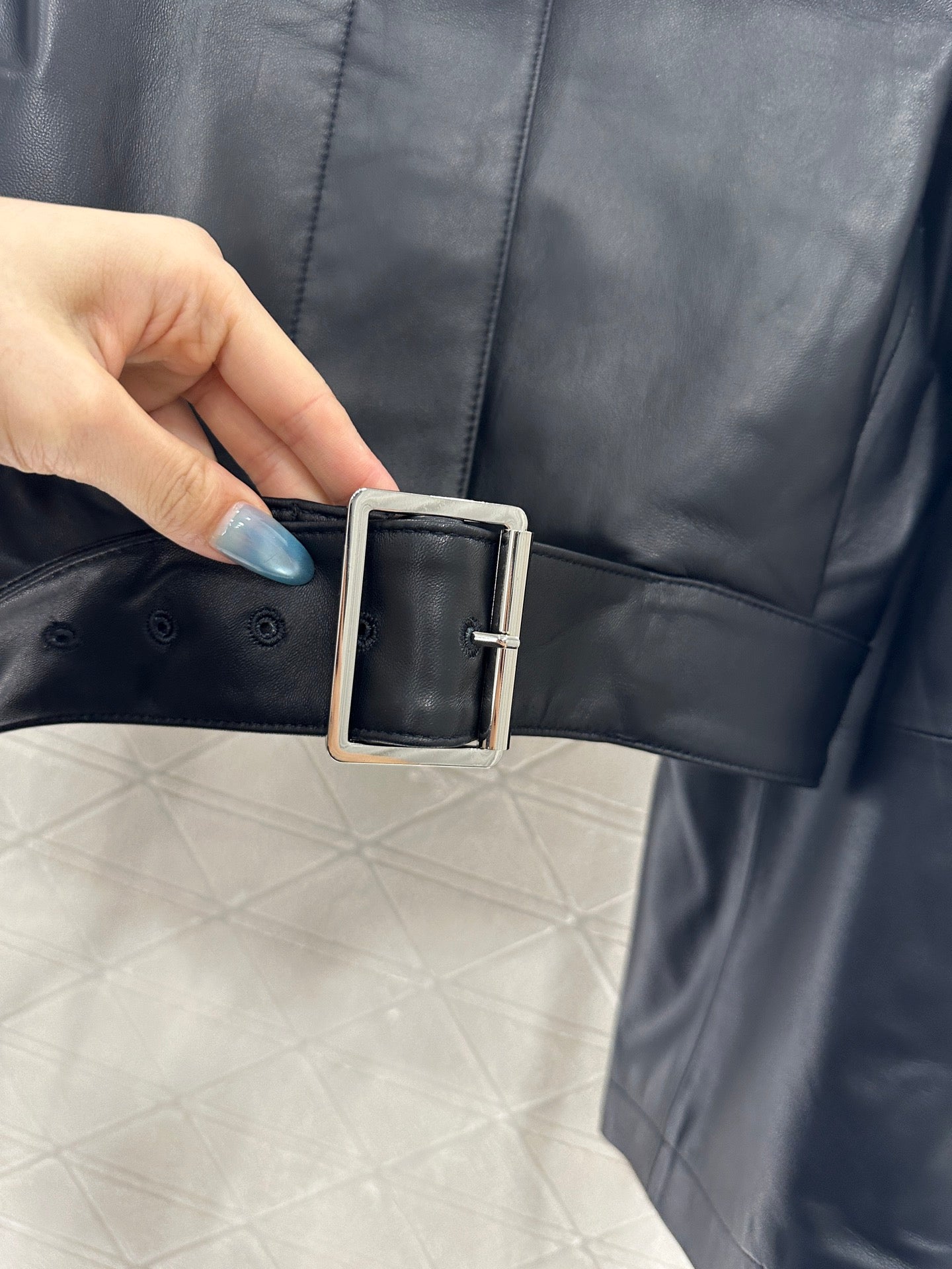 Made of 100% lambskin material, with delicate texture and clear texture, this short jacket features a stand up collar and a hidden open collar with a buckle at the collar and hem, giving it a cool and sporty look. The unique wide sleeves are a must-have for sweet and cool girls.