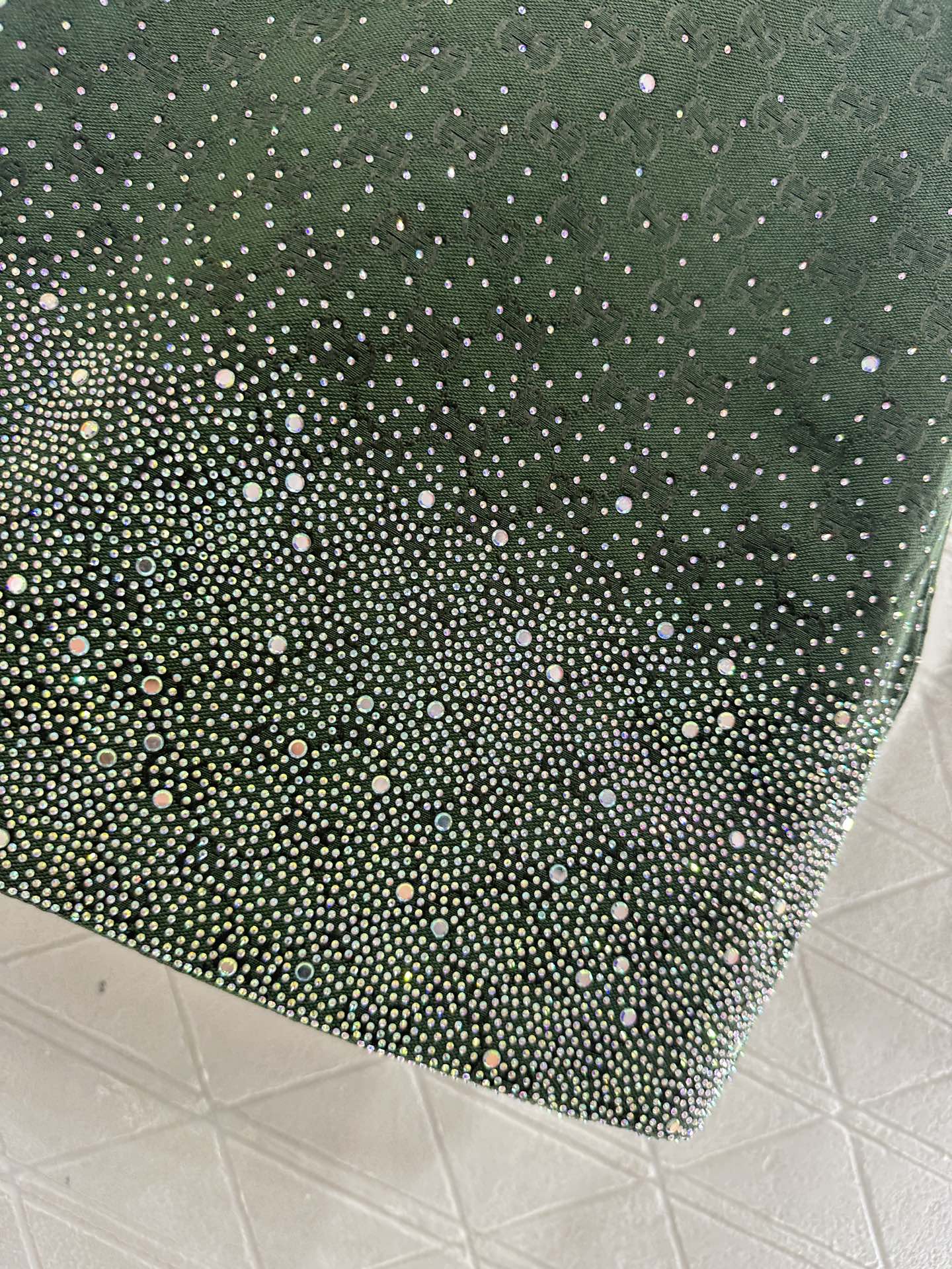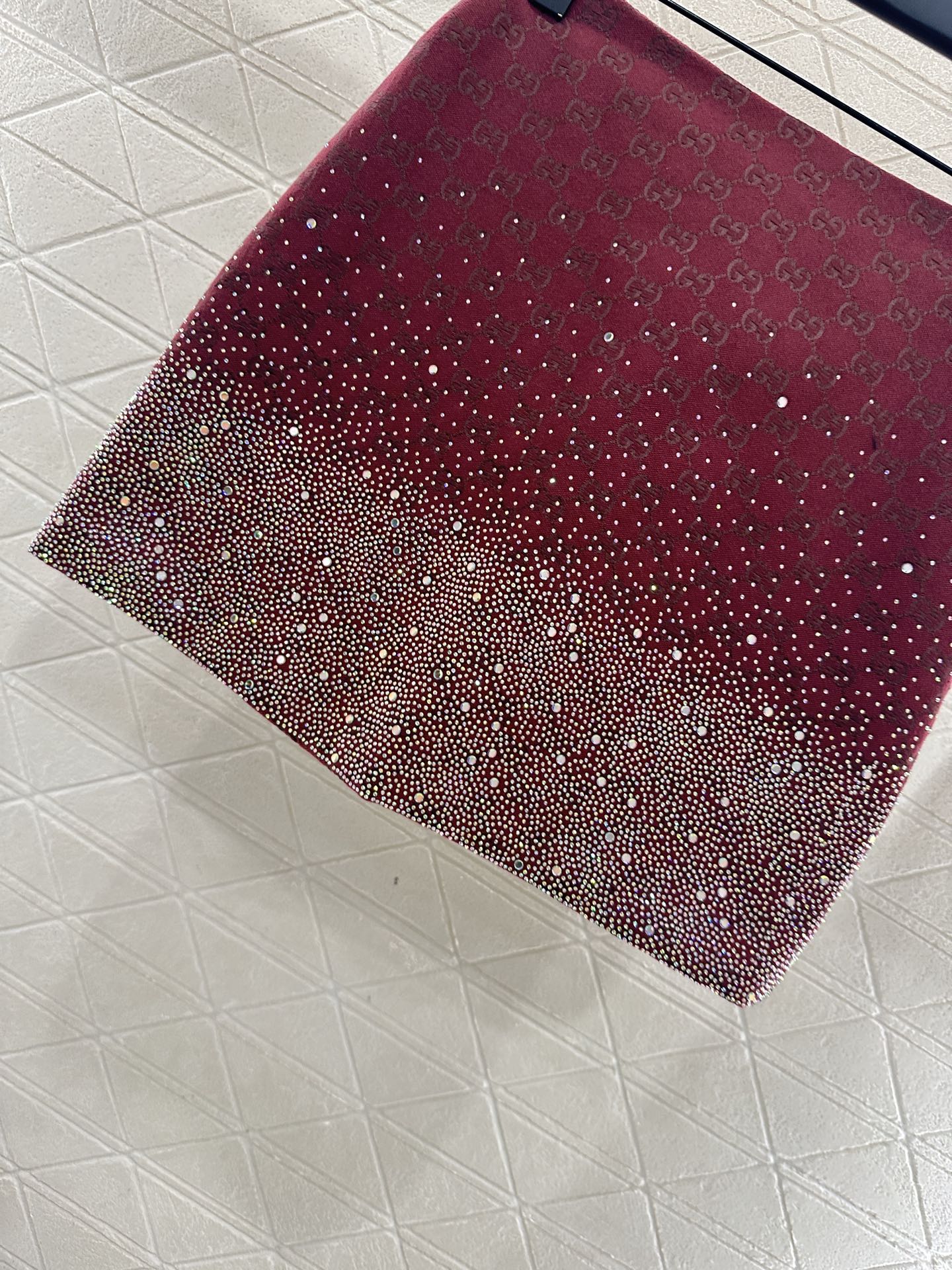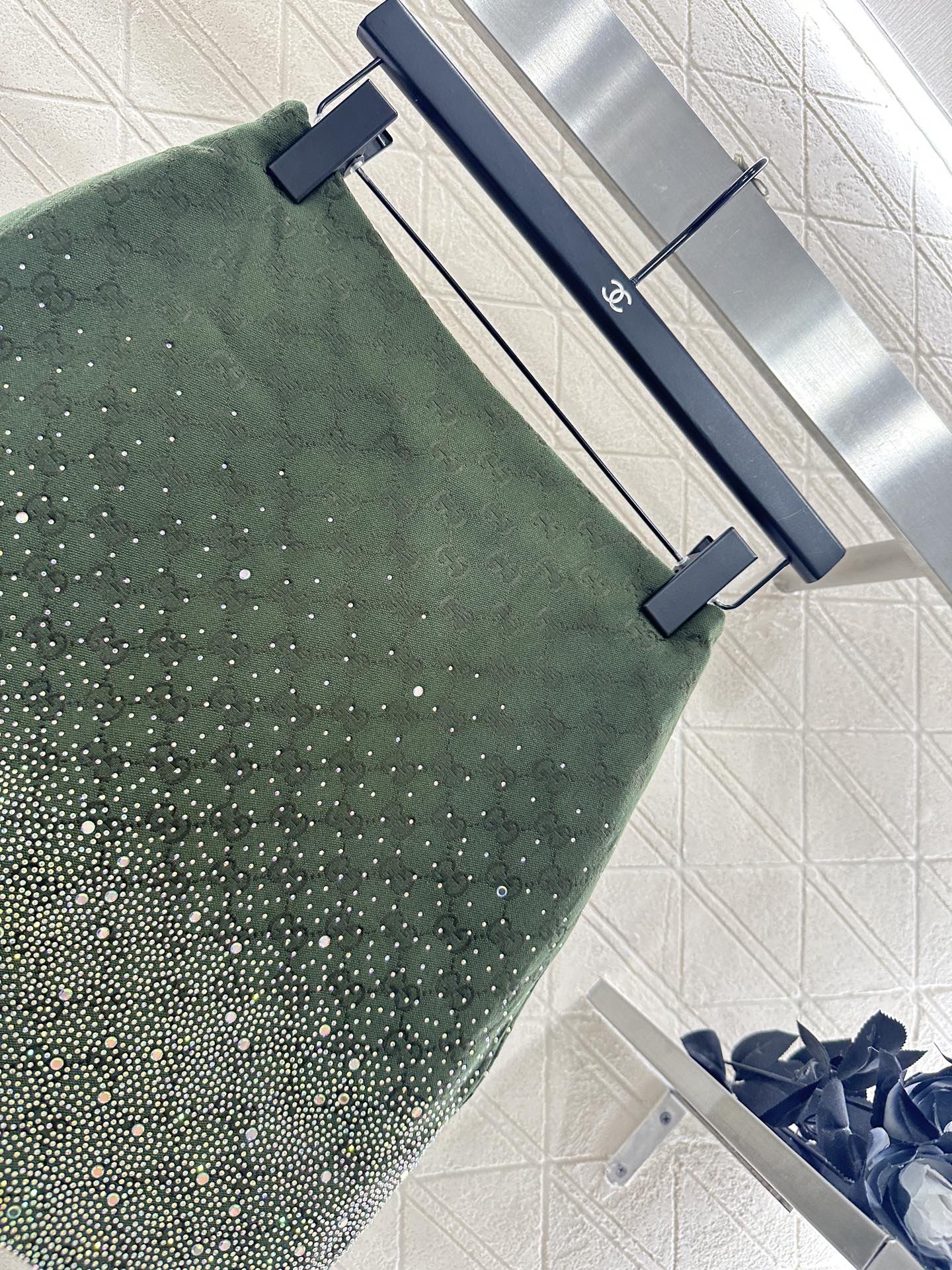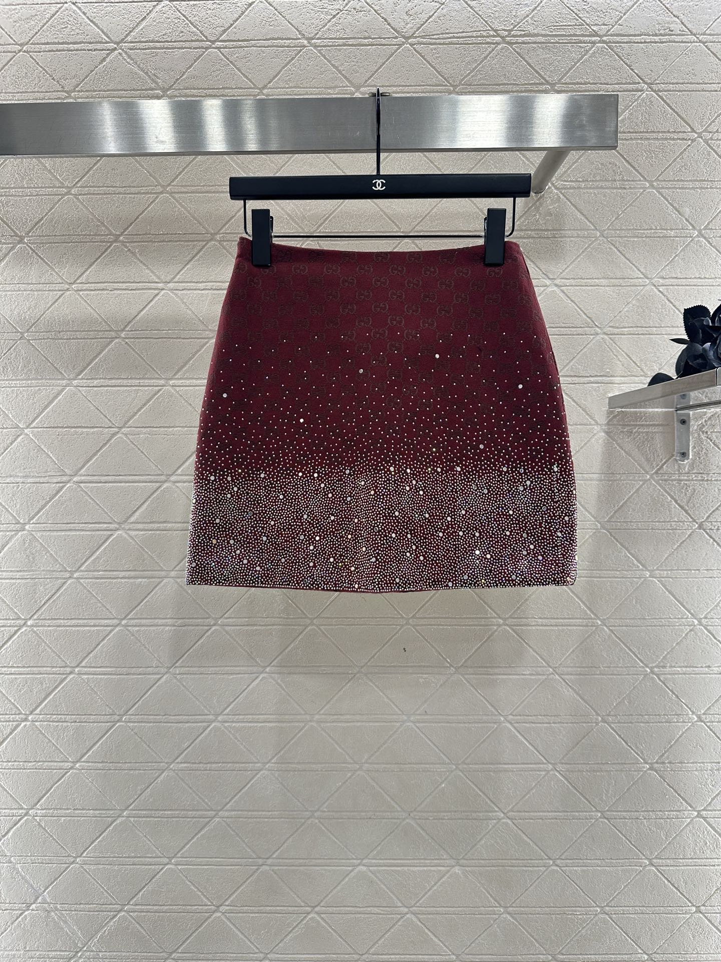 Custom YB imported jacquard material, high-quality texture, crisp and stylish, lapel silhouette cotton jacket version, diamond embossed line inside, down cotton filling, warm and practical. The large body is printed with double G jacquard, with a peaked lapel and front buttons, the shape is high-end and crisp, the hem flap pockets are embellished with heavy hot diamonds, shining from close up and flashing with a gradient luster from a distance. The design is rich in layers, creating a brand-exclusive sweet and cool style. Paired with a straight-tube hip-hugging miniskirt from the same series, the details echo and enhance the aura. It is a must-have fashion item for autumn and winter.