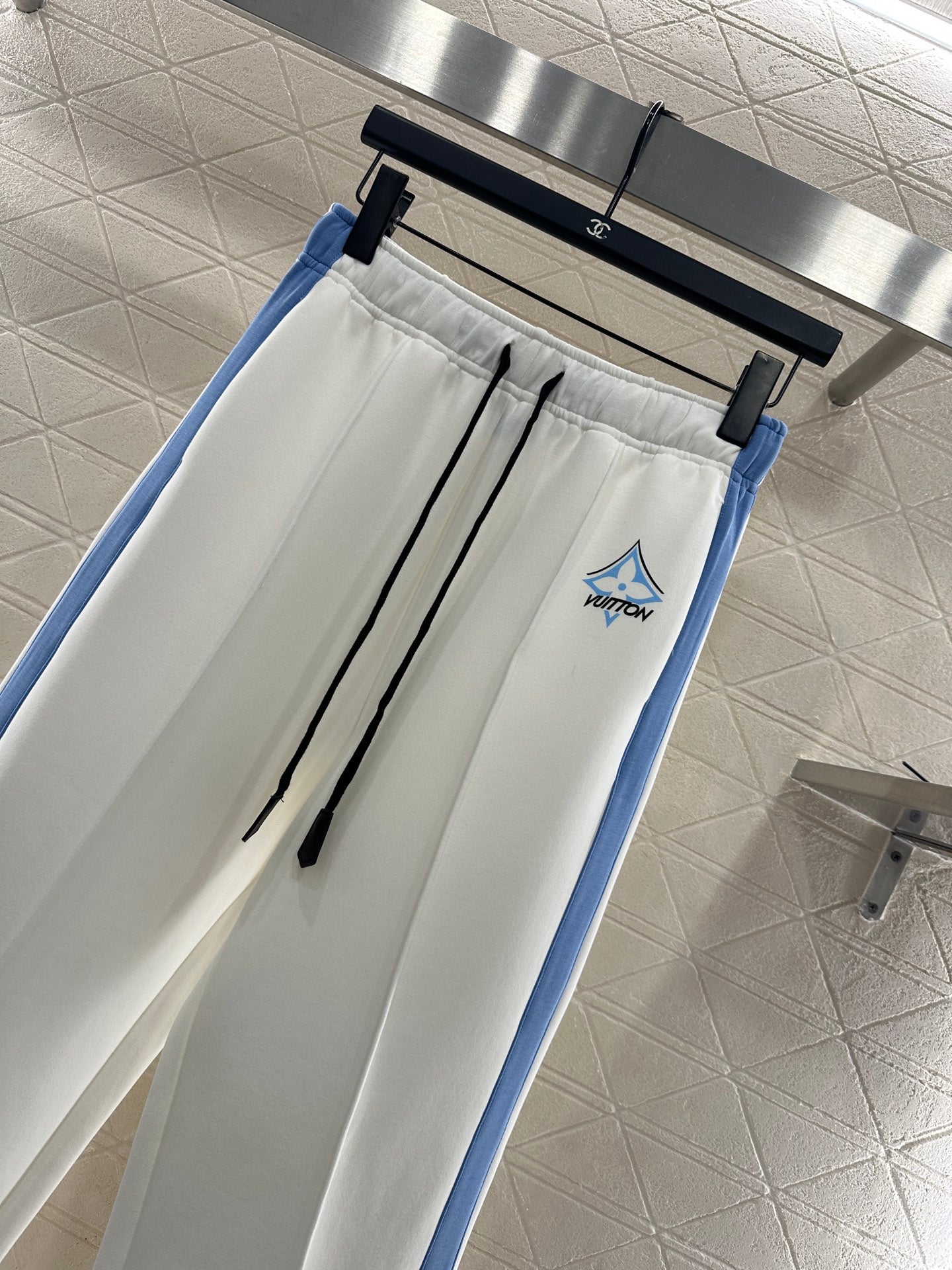Latest Skiing 🎿 Series, made of air cotton material, with a crisp texture and slightly elastic comfort, featuring a stand up collar jacket cut and a white main body ➕ The black, blue, and pink blocks are spliced and collided, creating a fashionable and casual overall look. The chest is adorned with three-dimensional clover elements and letter decorations, instantly enhancing the brand's style and adding vitality. Paired with the same drawstring elastic leg binding pants, the blue ribbon and pocket logo design on the side echo up and down, creating a unified overall coordination. The complete set is simple and high-end, making it an essential fashion guide for autumn and winter outfits.