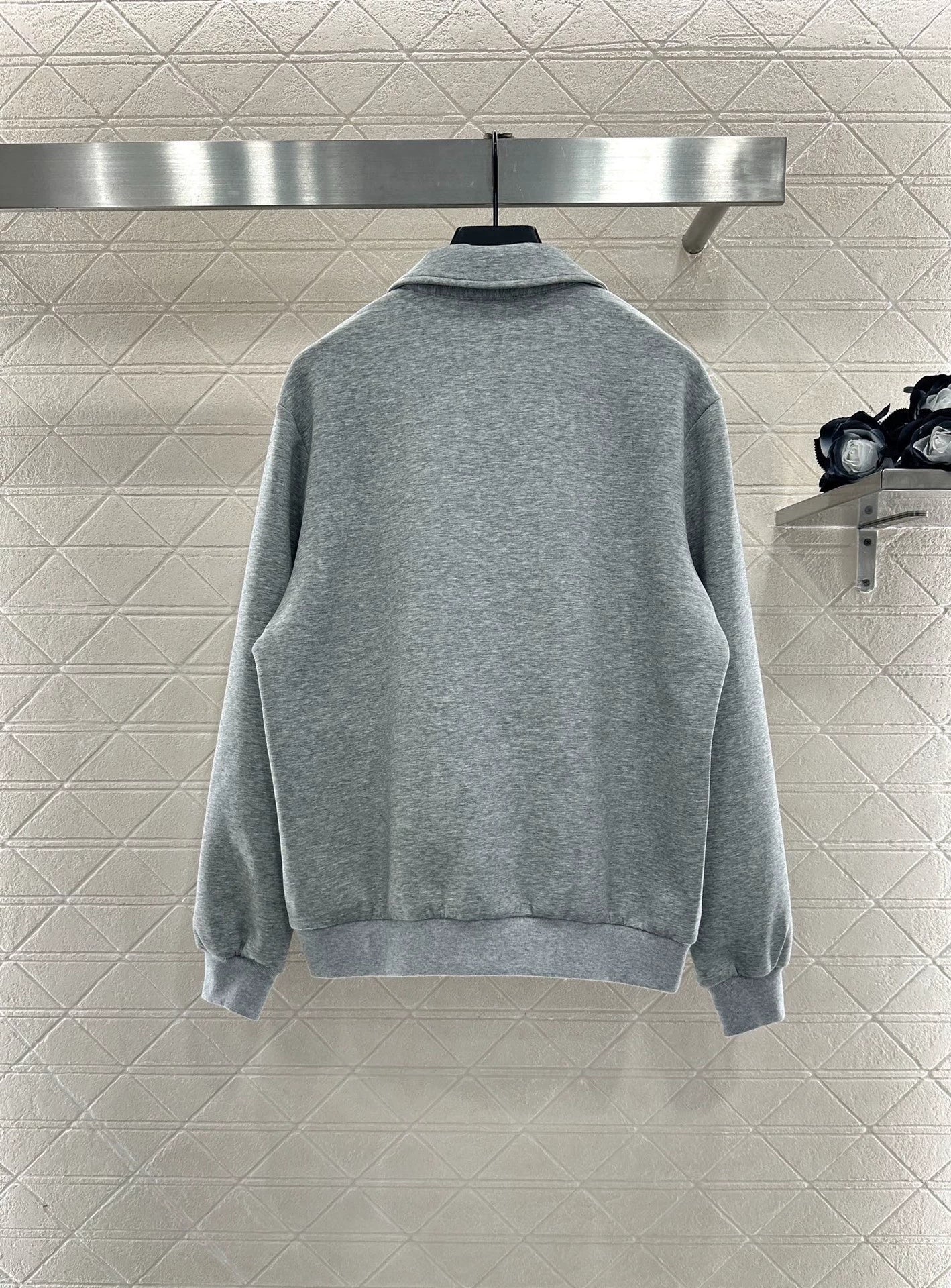 The twill cotton material has a glossy texture and a high-end appearance. It is a regular lapel jacket with adjustable zipper opening, full of casual feeling. It is versatile with plain colors and letter logos, highlighting the brand tone. Paired with straight leg pants of the same series, the drawstring at the waist is elastic and stylish, simple yet fashionable. It can be easily controlled for daily commuting