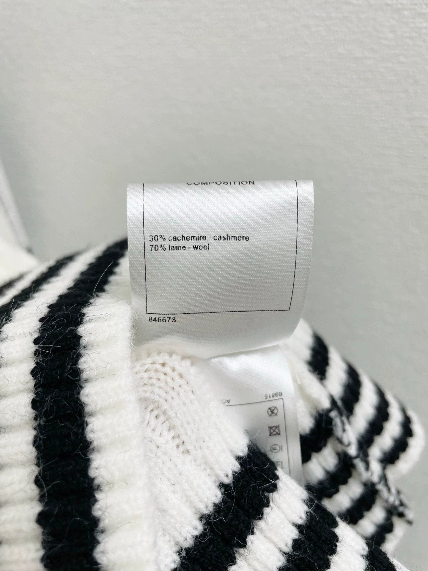 Jacquard knitted cardigan, black and white color scheme, classic fully printed logo design.