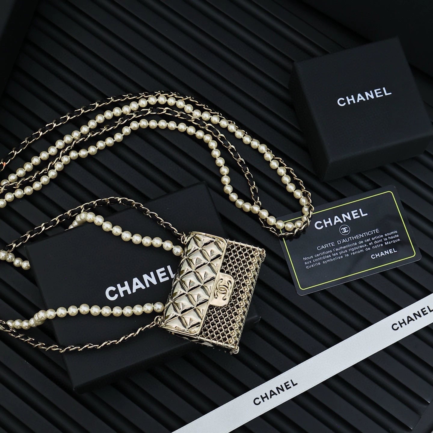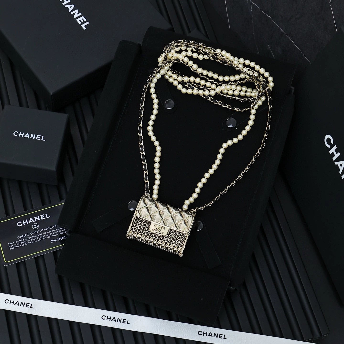 Double layer pearl+metal chain design, premium texture, online texture, complete laser, exquisite workmanship, flawless.