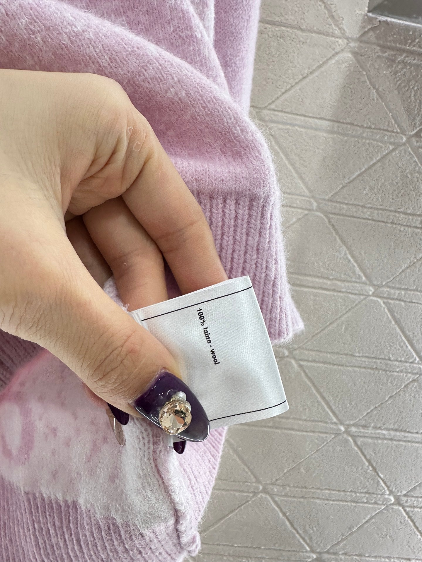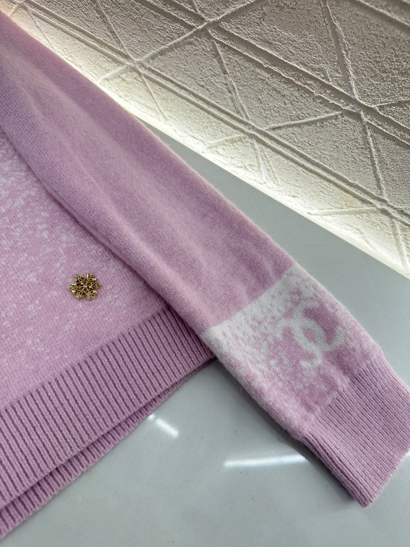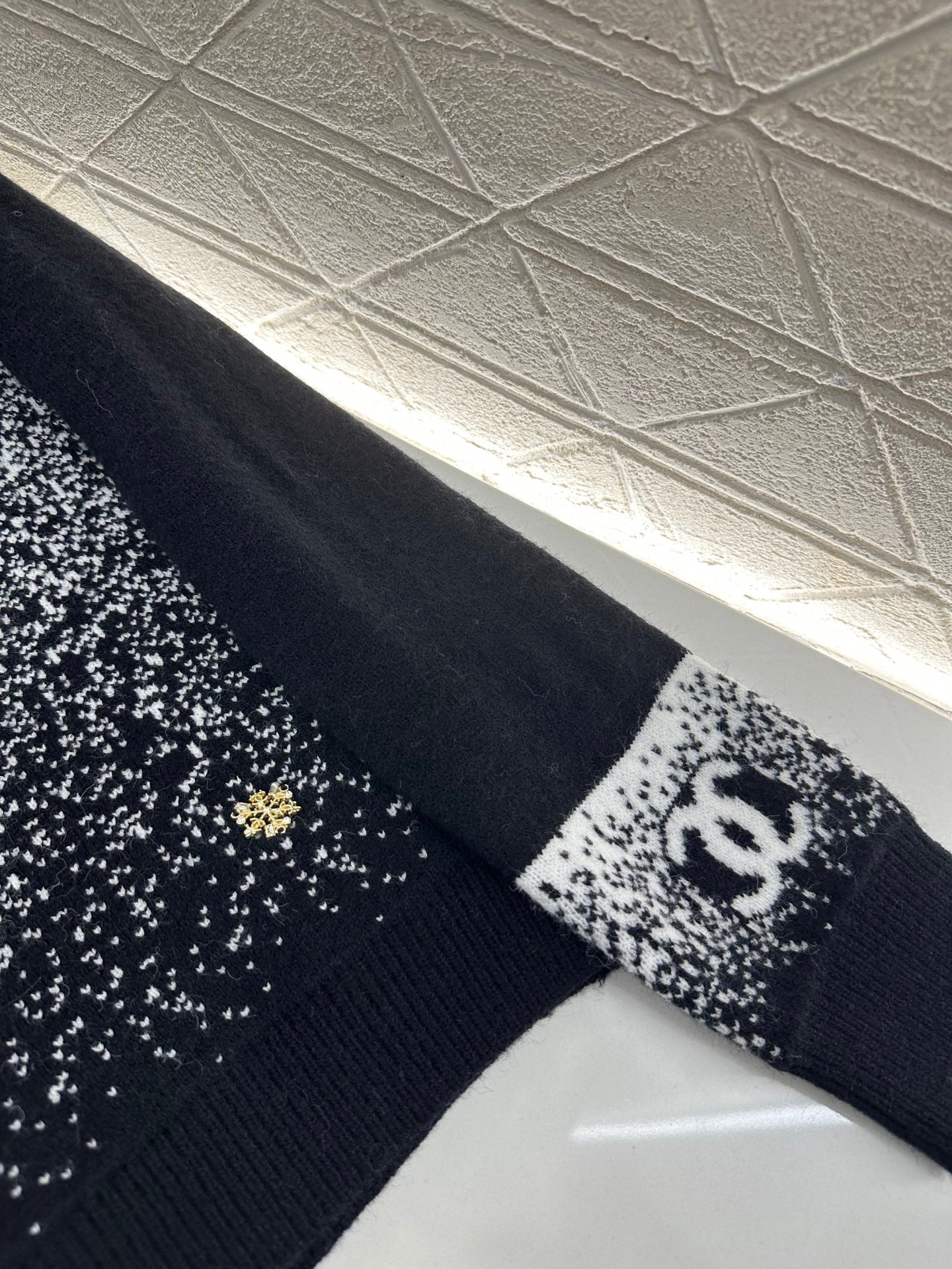 Woolen yarn weaving, delicate texture, soft and comfortable, round neck knitted vest cutting, spiral pattern edging on collar and cuffs, delicate and soft. Large body positioning distribution, with a combination of navy blue crochet flowers to form a flower shape, and a double C letter logo on the chest to echo, adding a youthful atmosphere. The upper body is youthful and stylish, suitable for daily commuting and dating