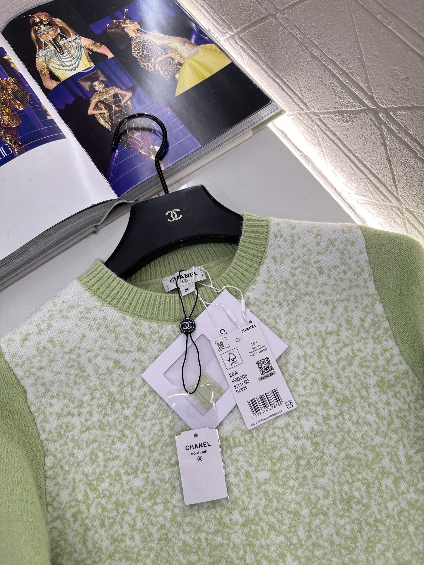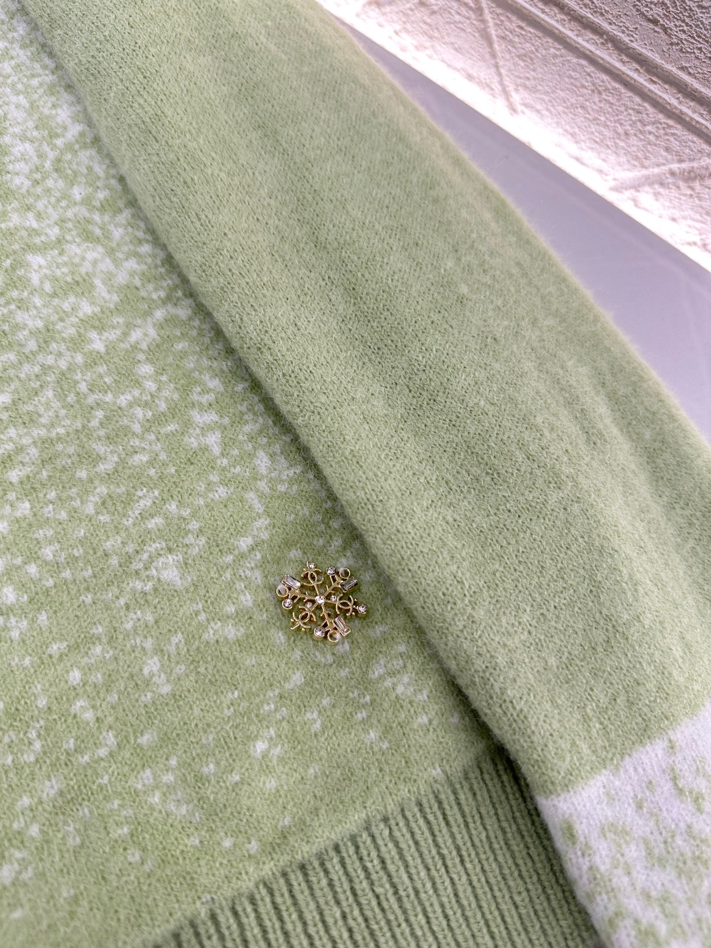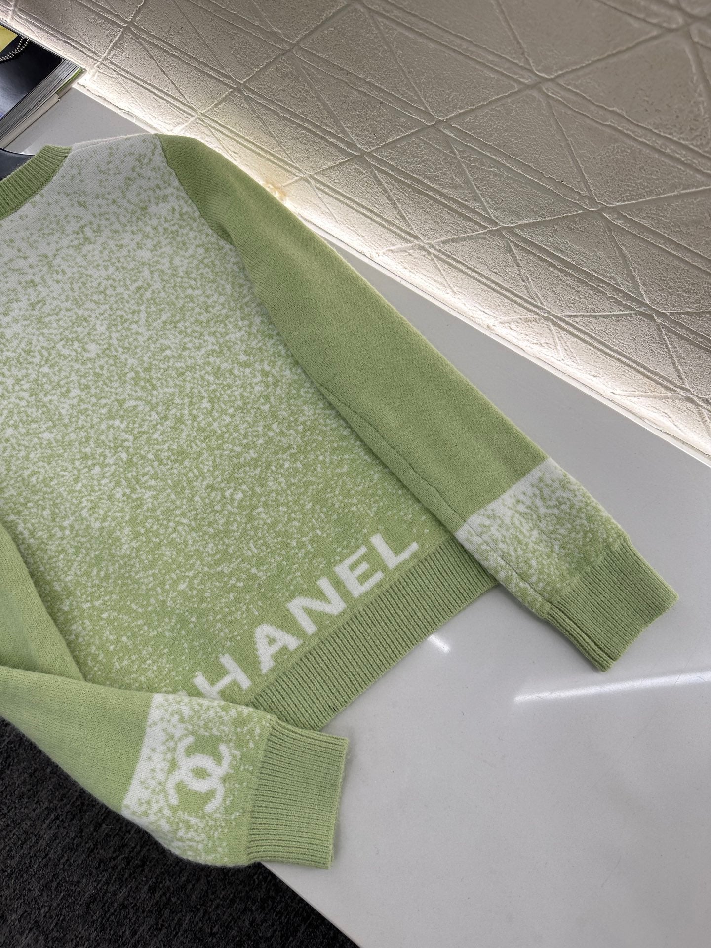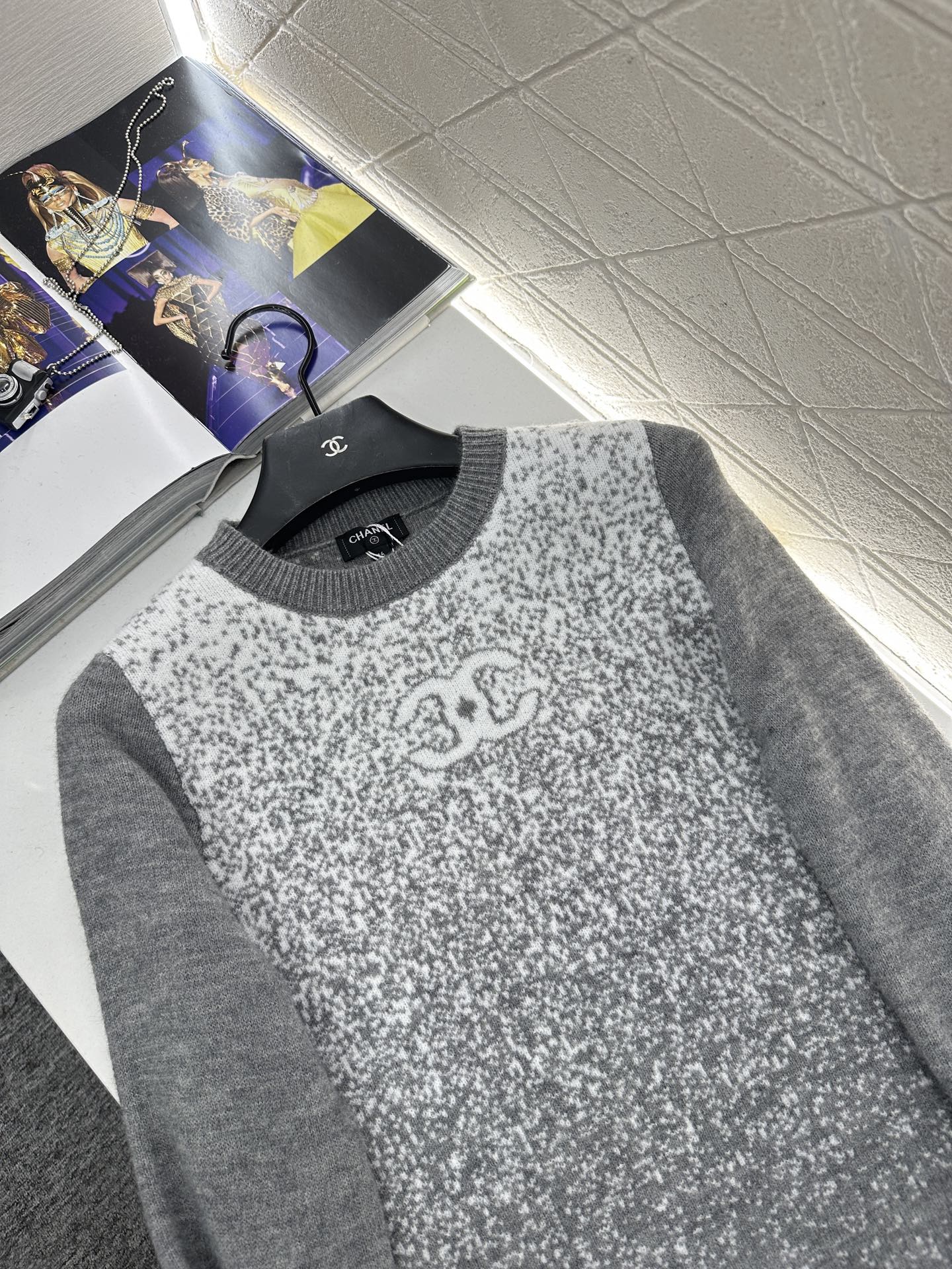 Woolen yarn weaving, delicate texture, soft and comfortable, round neck knitted vest cutting, spiral pattern edging on collar and cuffs, delicate and soft. Large body positioning distribution, with a combination of navy blue crochet flowers to form a flower shape, and a double C letter logo on the chest to echo, adding a youthful atmosphere. The upper body is youthful and stylish, suitable for daily commuting and dating