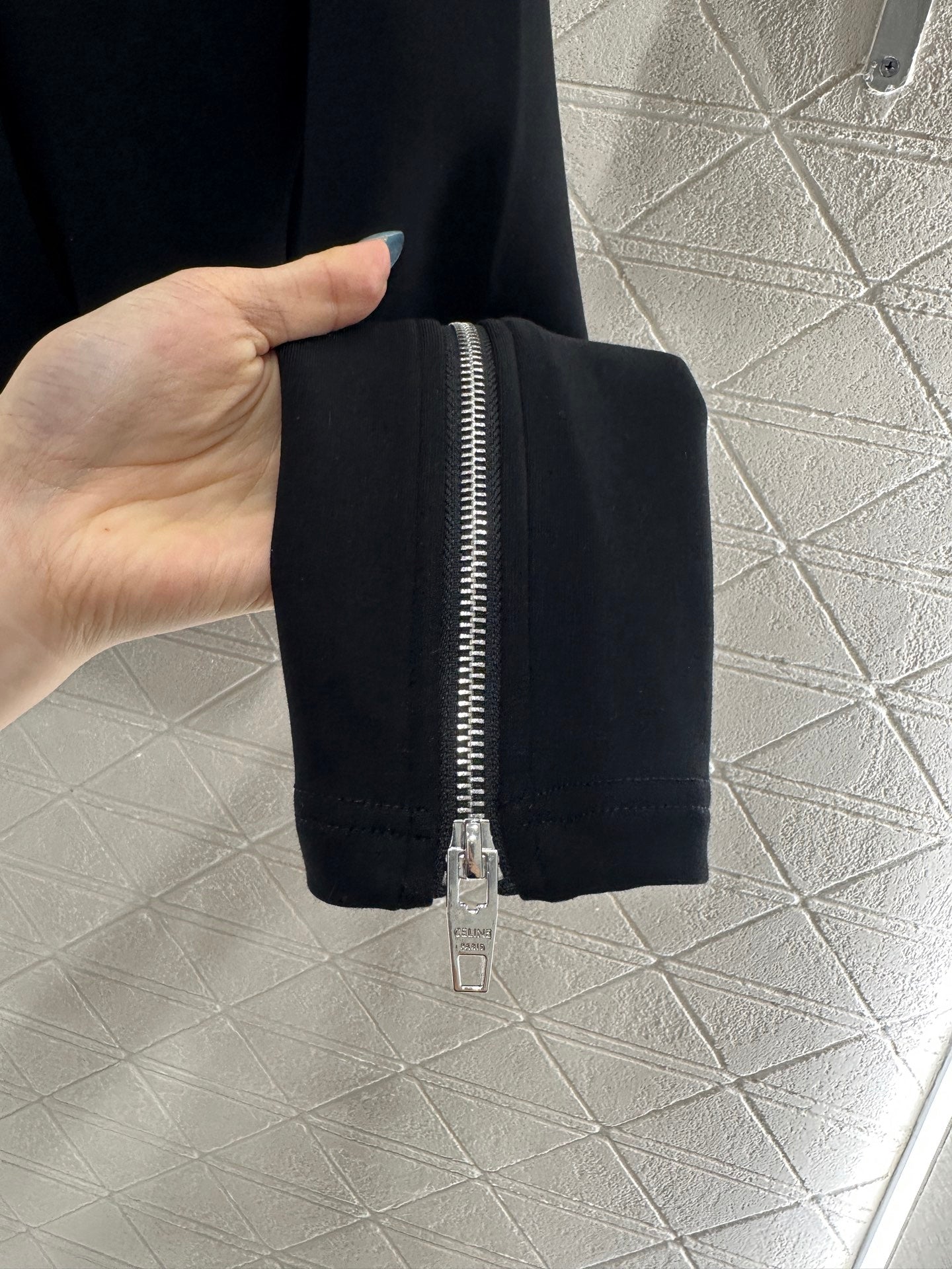 Glossy texture, comfortable drape, hooded sweatshirt cut, fashionable and casual, with a contrasting color of the Arc de Triomphe logo on the chest, instantly enhancing the brand's style and enriching the visual effect to make it more fashionable. The large body is durable and versatile in plain colors, and the side sleeve zipper slit adds vitality. Paired with the same series of straight leg wide leg pants, the style echoes from top to bottom. The zipper webbing on the outside of the pants legs elongates the line, making it more personalized and casual, increasing the sense of styling. The complete set is simple and high-end, essential for daily wear, a daily casual dressing guide, relaxed and fashionable