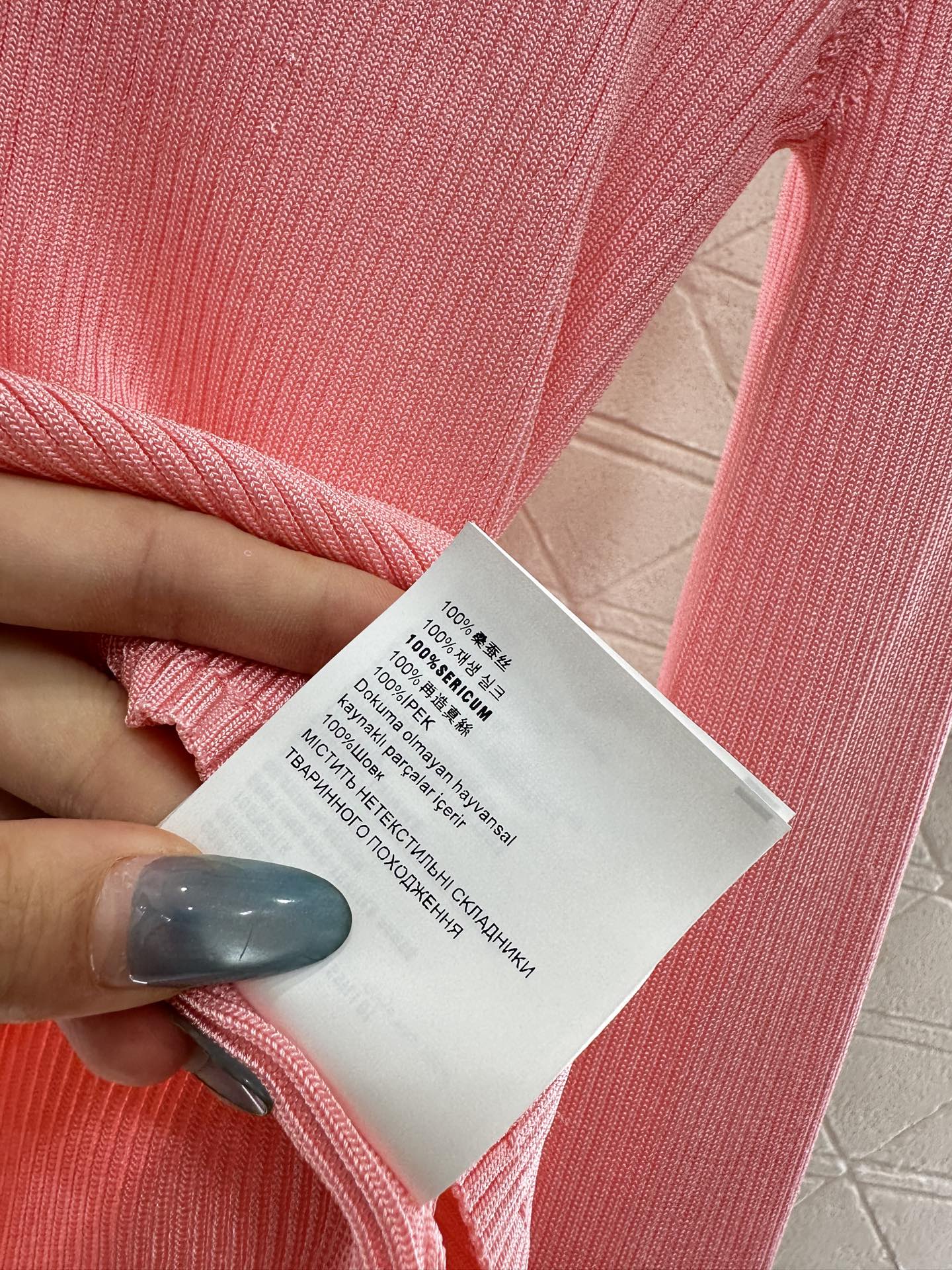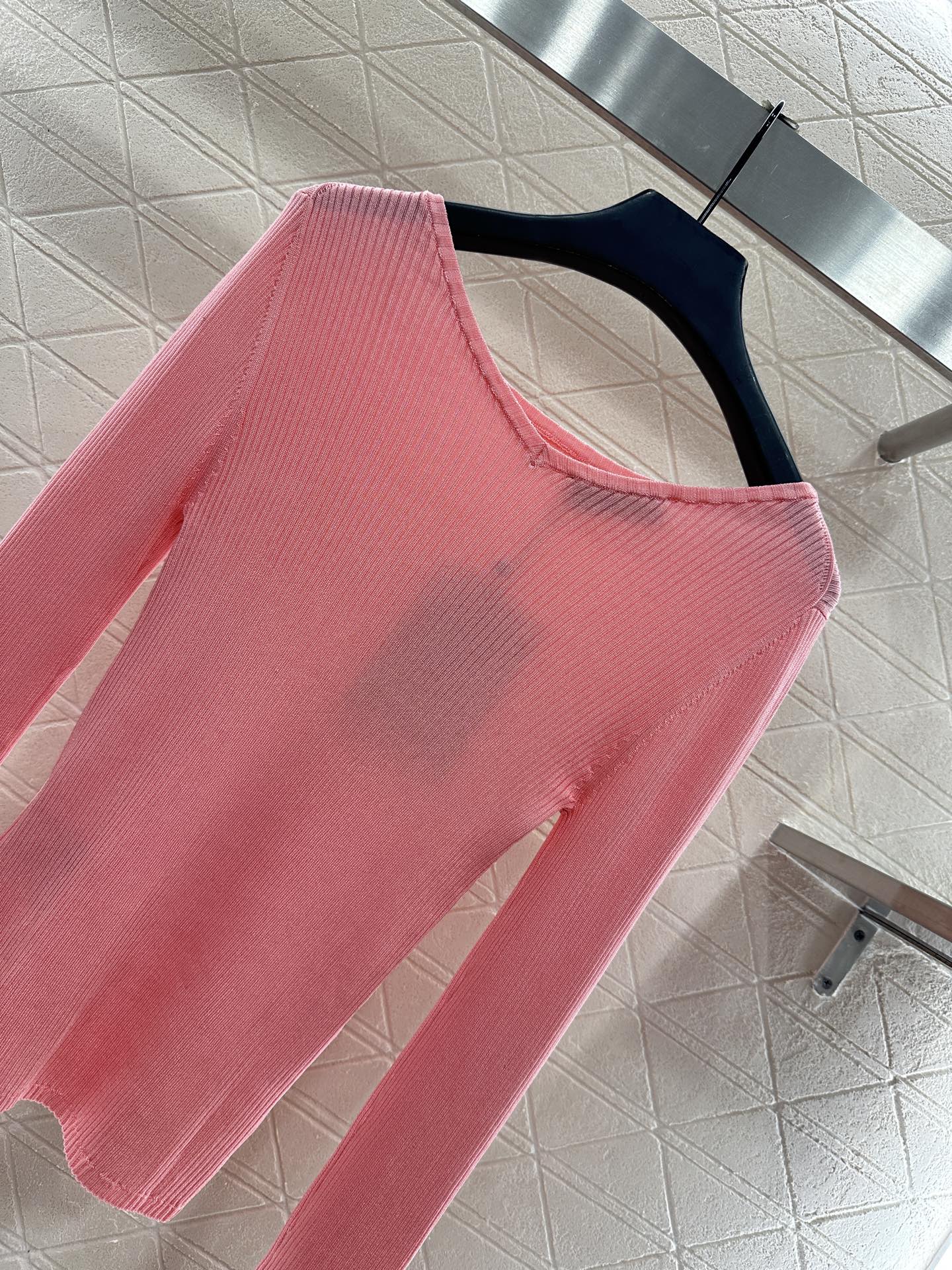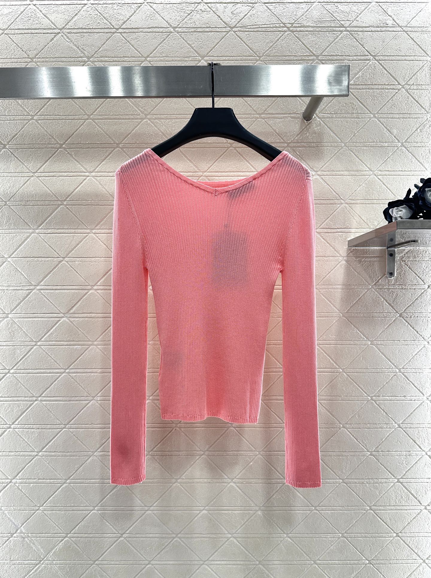 Weaved with silk and wool yarn, the texture is high-end, comfortable and soft. The flat mouthed large round neck knitted long sleeved cut is delicate and the vertical pit strip knitted texture is wrapped to enhance skin exposure and decorate the shoulders and neck, making it easy to look thin. It highlights the perfect detail texture, with a center neckline letter logo, exquisite and stylish, versatile and plain colors, and a sweet and youthful outfit.