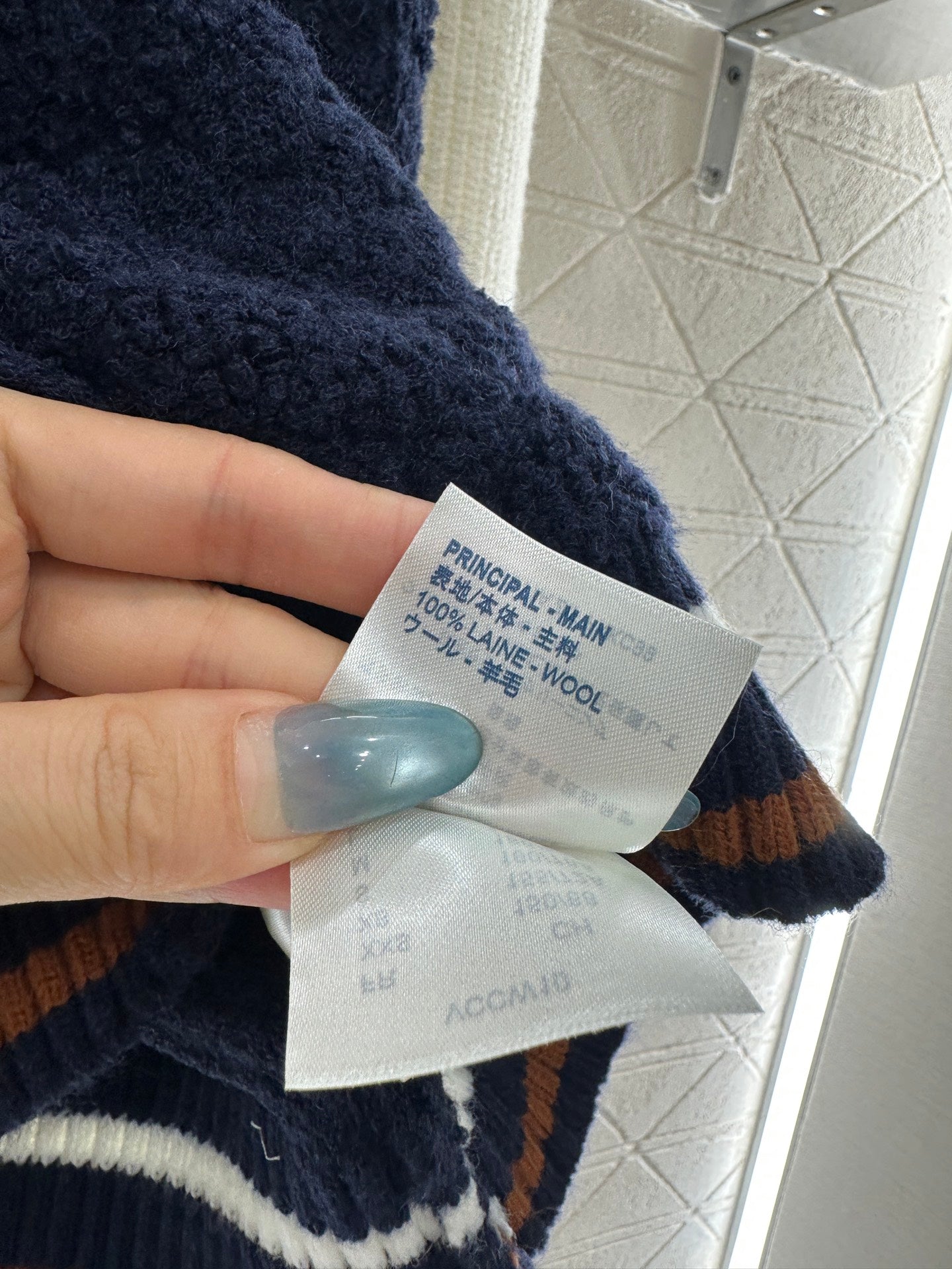 Woolen yarn weaving, jacquard processing, presenting a three-dimensional concave convex shape, baseball style jacket pattern, ready to wear buttoned open collar, with elastic groove thread ➕ The collar and hem are trimmed and narrowed, creating a high-end and casual overall design. The body is adorned with a textured four leaf clover element jacquard embellishment, and the two sleeves are spliced in contrasting colors to create a fashionable tone. The four leaf clover texture on the cuffs is consistent with the back collar letter logo design, and the elastic fabric is more inclusive, creating a brand's fashionable style.