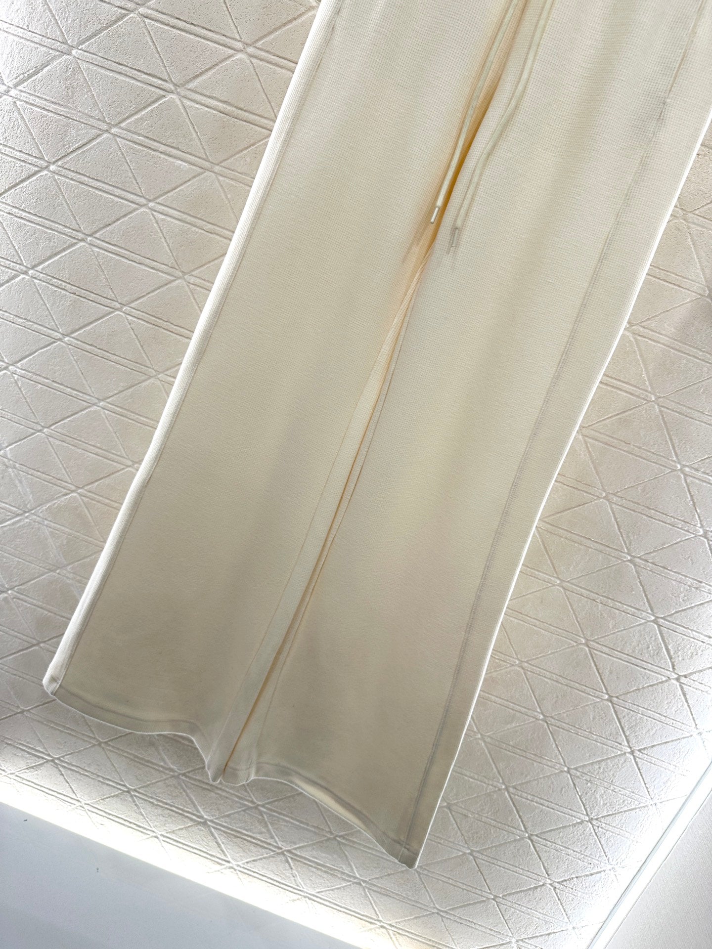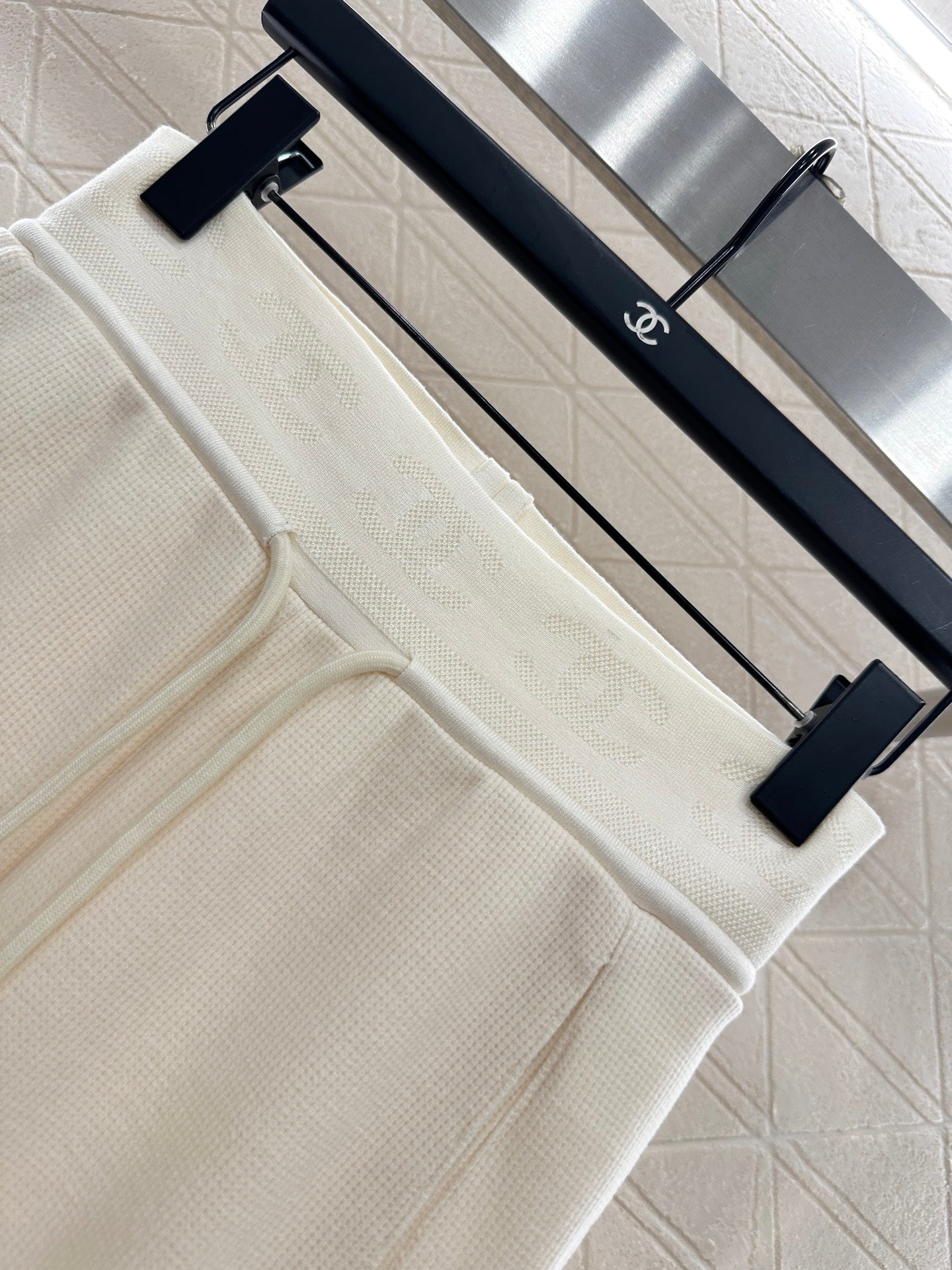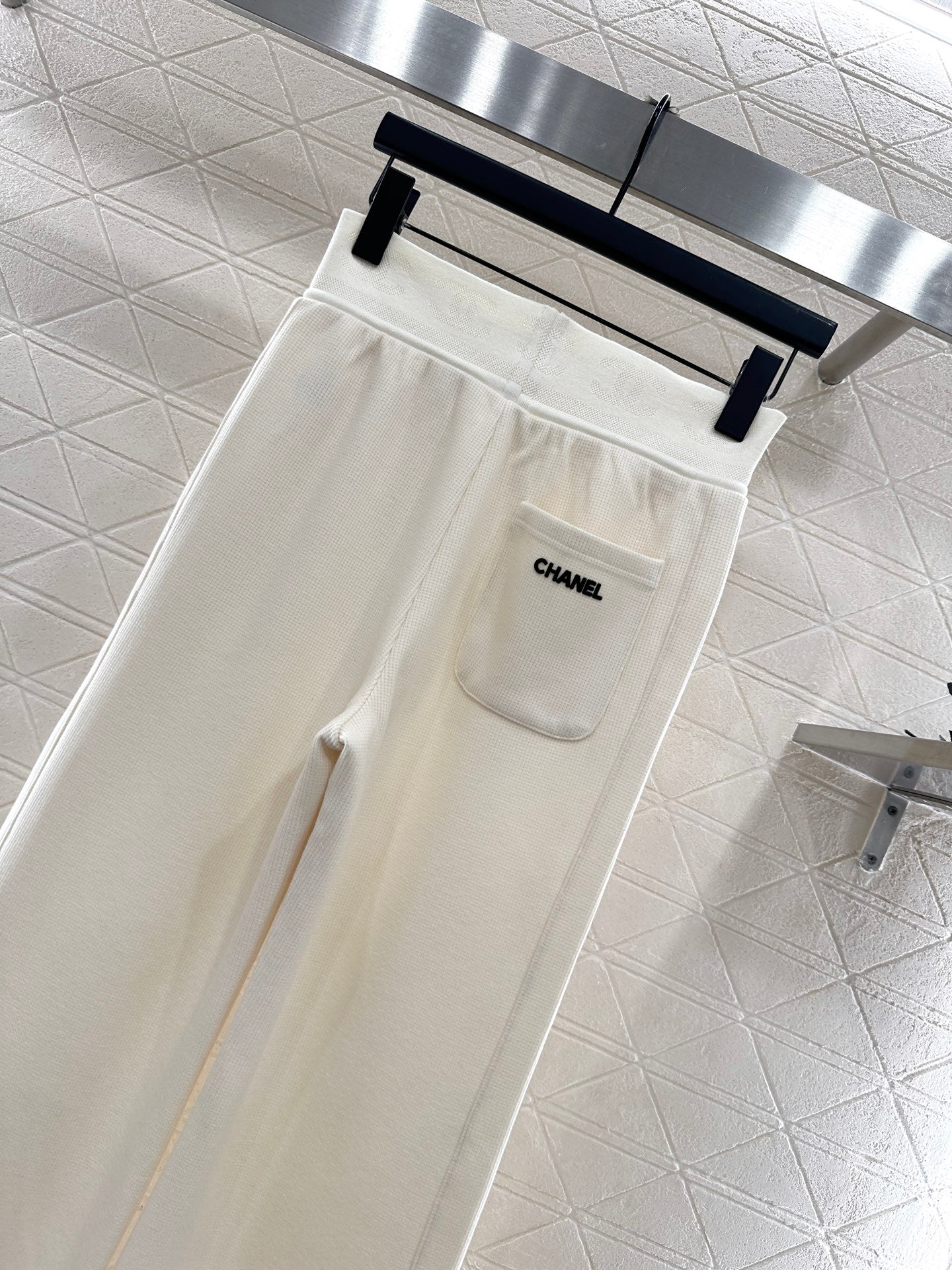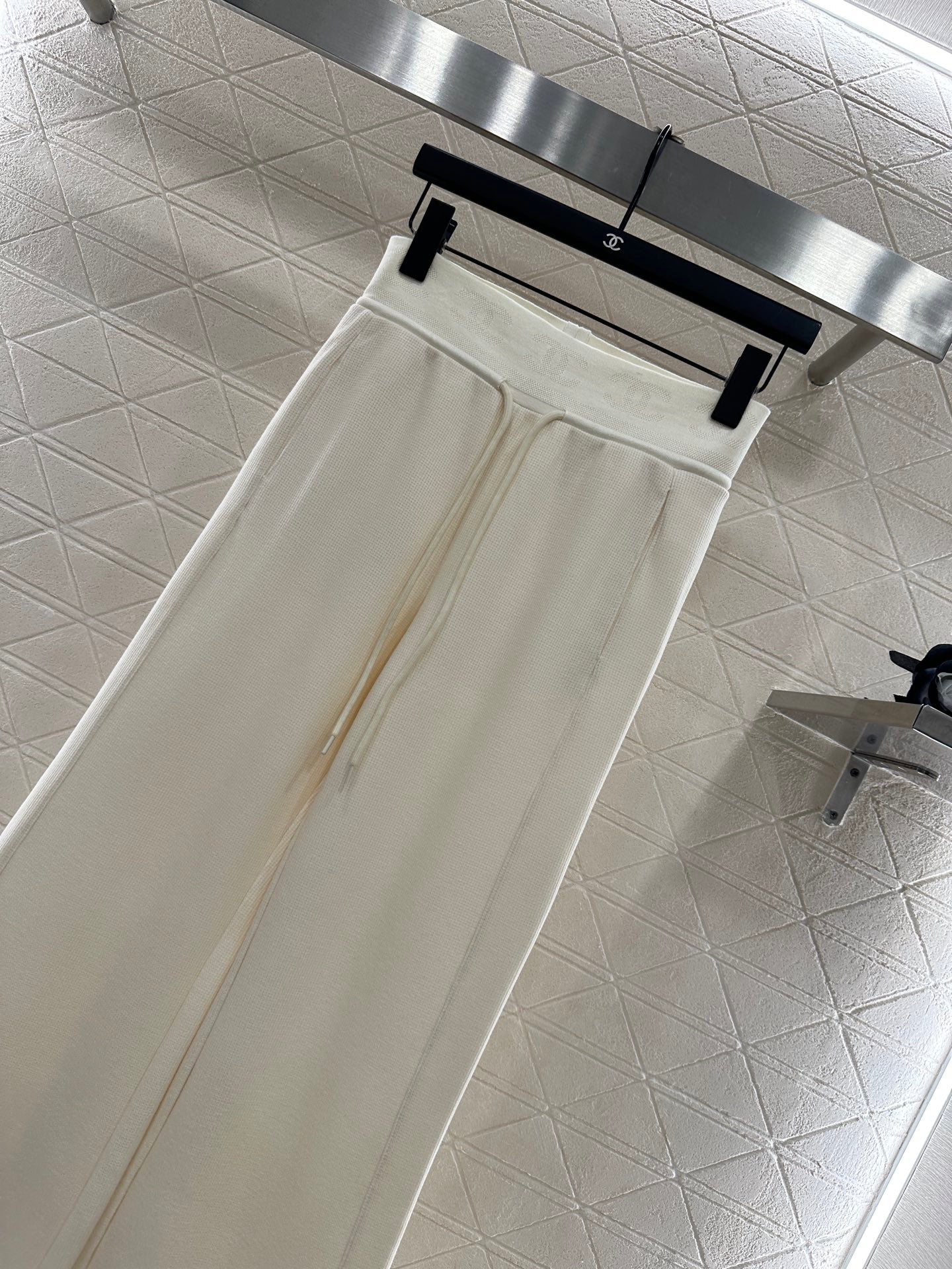 Made of human cotton material, suitable for autumn thickness, comfortable and easy to wear, with drawstring wide leg straight leg pants and elastic waistband tightly wrapped around the body, slimming and modifying the body. Paired with hollowed out double C logos, it is low-key, eye-catching and fashionable, highlighting the brand positioning and enhancing the texture, adding fashionable charm to the overall look. The wide leg straight leg accommodates the legs, making it worry free to wear. It is the best choice for daily casual wear, relaxing and stylish.