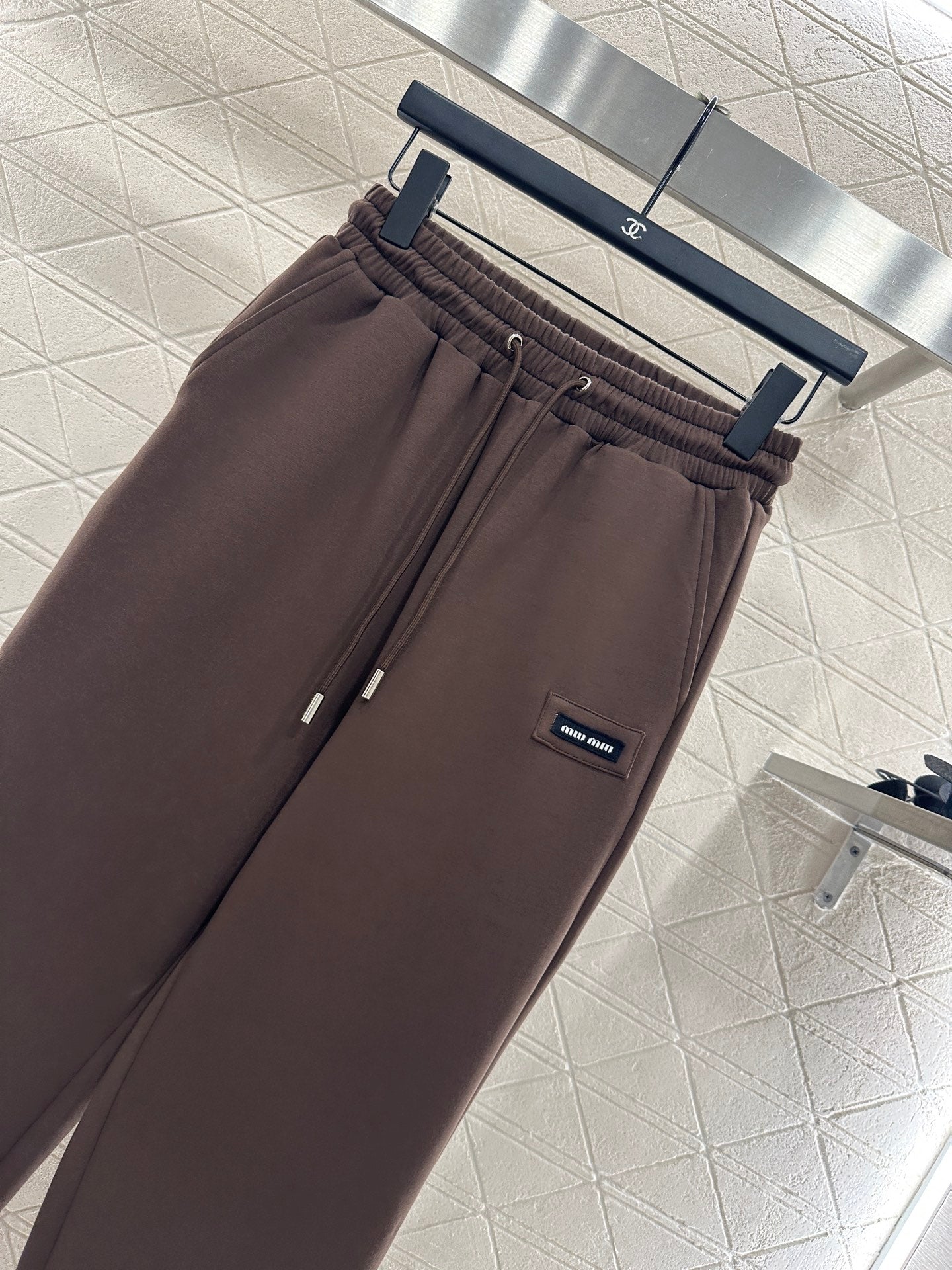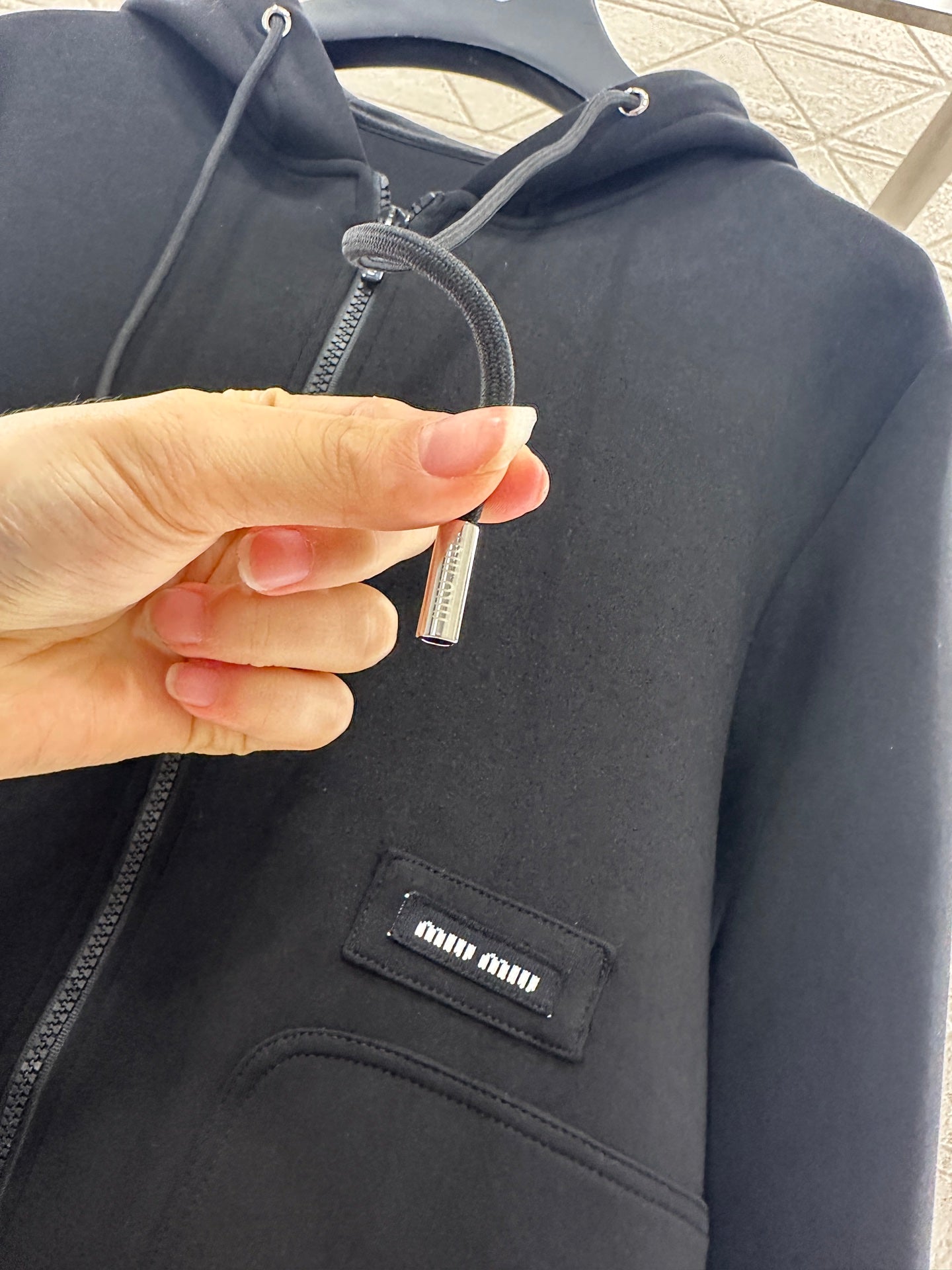 The twill cotton material has a glossy texture and a high-end loose silhouette. The hooded drawstring jacket has a zipper opening that adjusts the casual feeling. The large capacity pocket is embellished with letters and logos on the upper edge, highlighting the brand's tone. It is matched with the same series of leg tied pants. The waist drawstring is elastic and suitable for wearing. It is simple and stylish without losing its sense of fashion