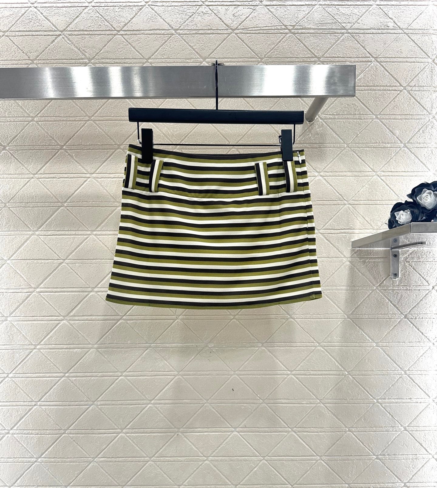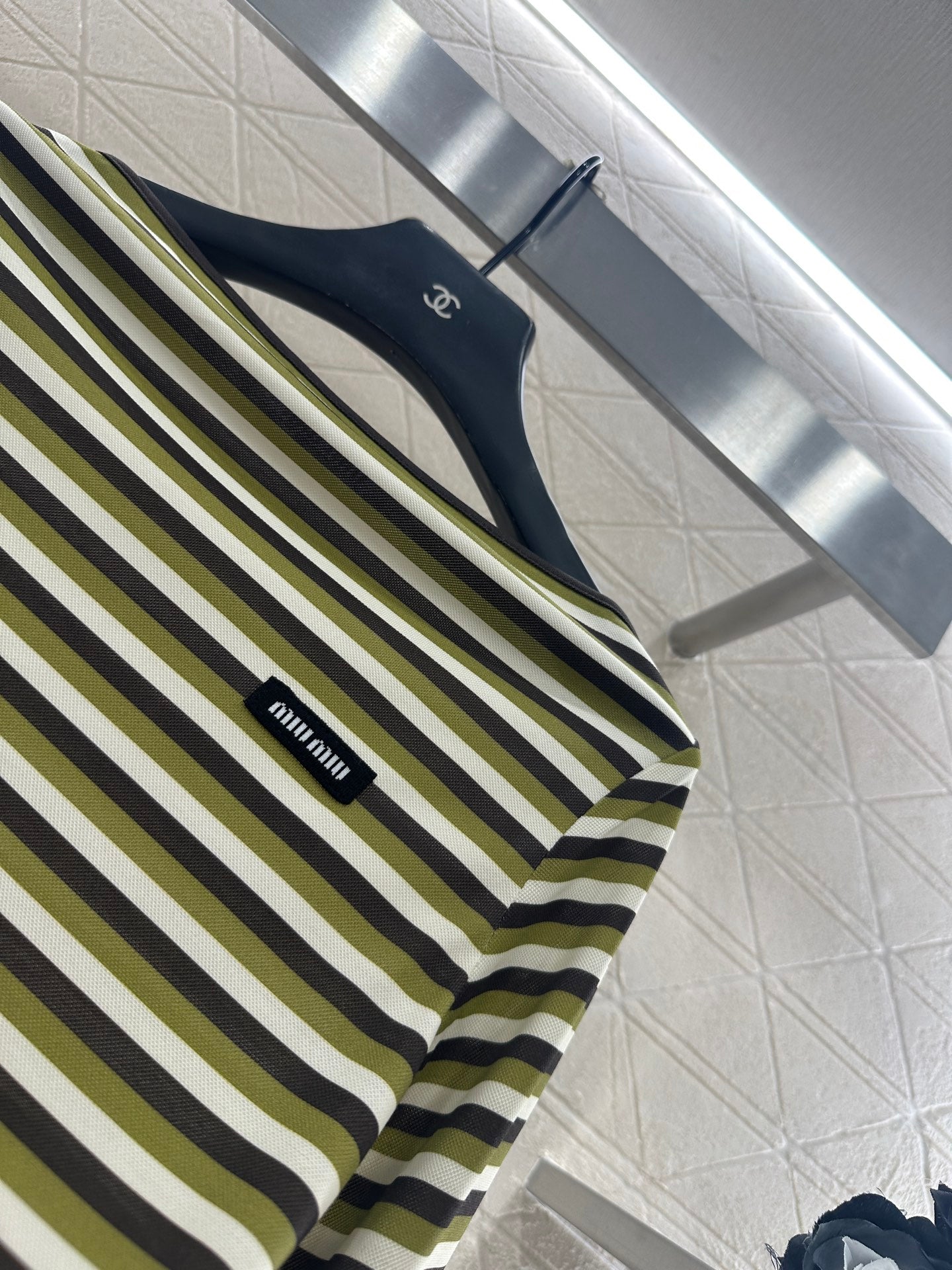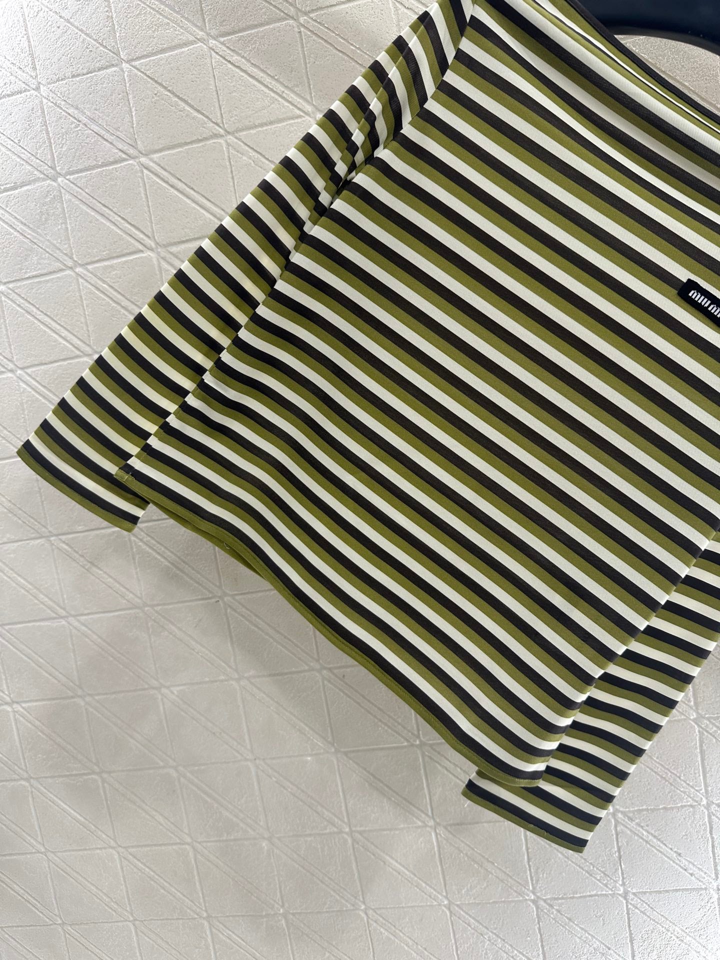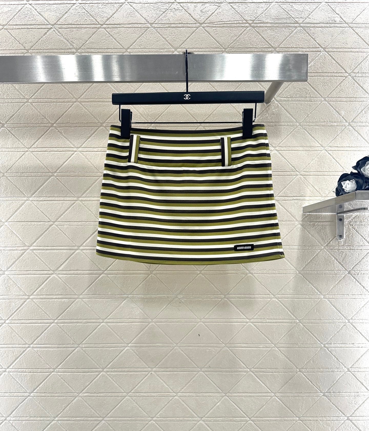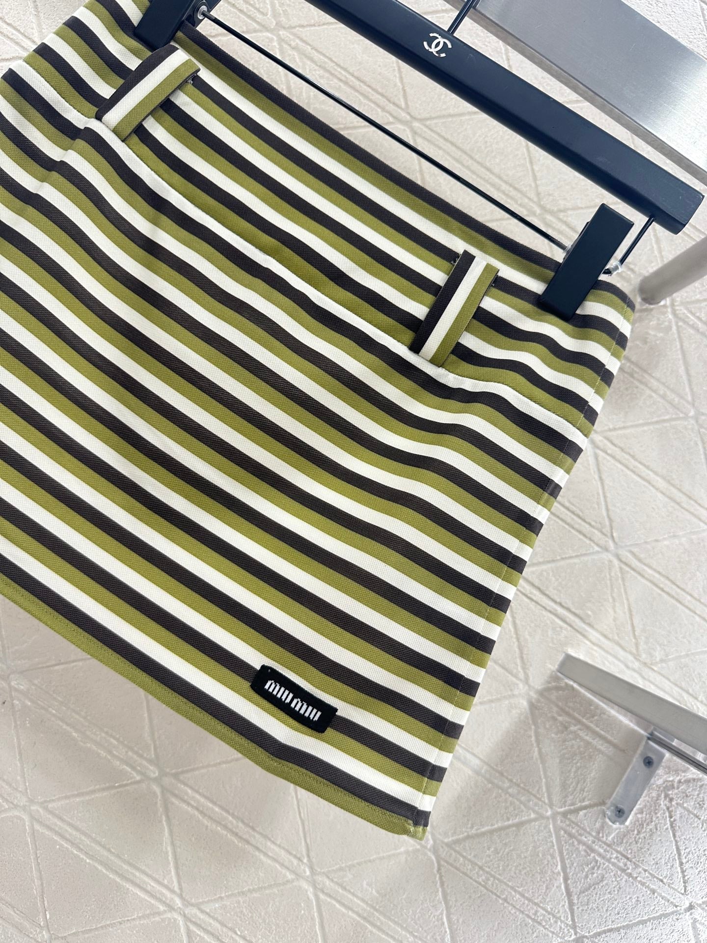 Custom YB silk-cotton material, textured and lustrous, comfortable to wear. This off-the-shoulder top and skirt set features alternating stripes of varying thicknesses throughout, making it versatile and durable. The iconic letter logo on one side of the neckline breaks away from the monotony, revealing the collarbone and neck for a more layered look. Paired with a skirt from the same series, the symmetrical perforated strips on both hips create a stylish and fashionable outfit. Available for all seasons! Custom fabrics and accessories