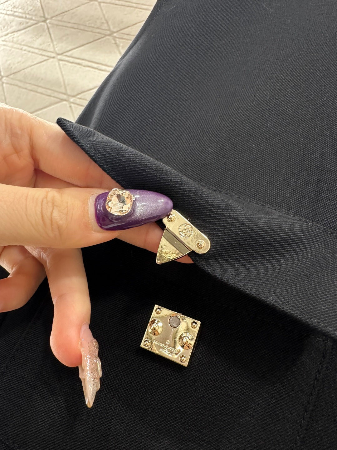 Made from high-quality imitation wool, this dress boasts a delicate texture and beautiful drape. The stand-up collar and vest design enhance its sophistication through meticulous tailoring and details. The elegant and sophisticated design, along with the three-dimensional pleats at the chest, flatters the figure and accentuates feminine curves. A flap pocket at the chest features a refined metal-engraved clasp, highlighting the brand's style, while the leather zipper at the back adds a touch of femininity. The A-line skirt effortlessly flatters the figure, enhancing the overall intellectual and forgiving silhouette. The dress is simple yet sophisticated.