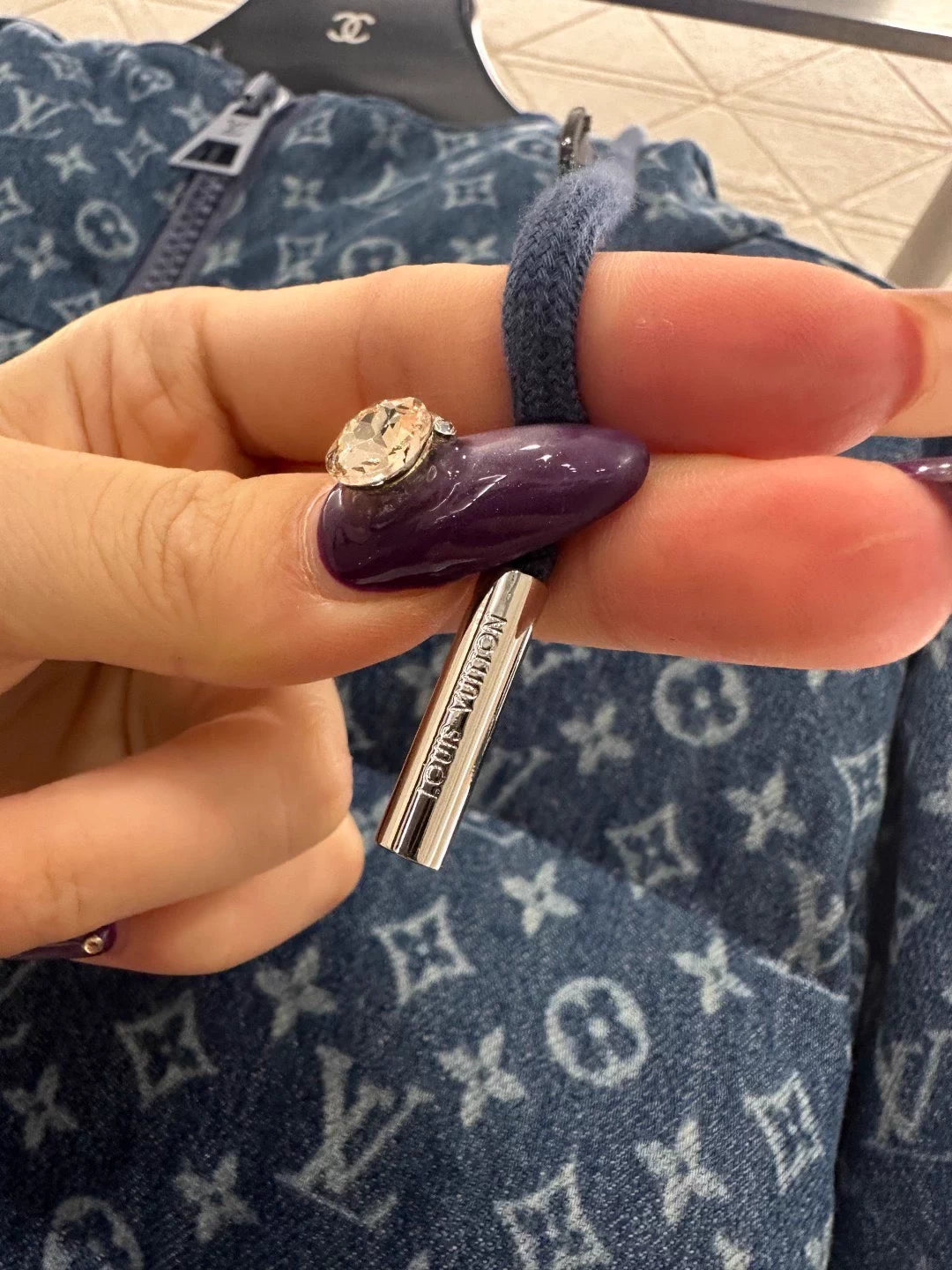 Hooded drawstring zipper denim down