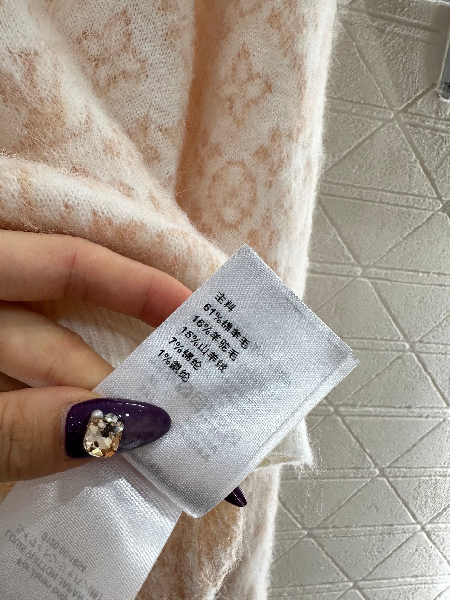 Cashmere wool knitted material, premium texture, comfortable and soft, round neck long sleeved sweater, collar and cuff thread edging echoing the hem, the body is covered with four leaf clover and letter logo patterns, forming a color pattern contrast with the edging, full of vintage feeling, highlighting the brand tone, cashmere knitted fabric, warm and comfortable, regular style, simple and versatile for autumn and winter daily use