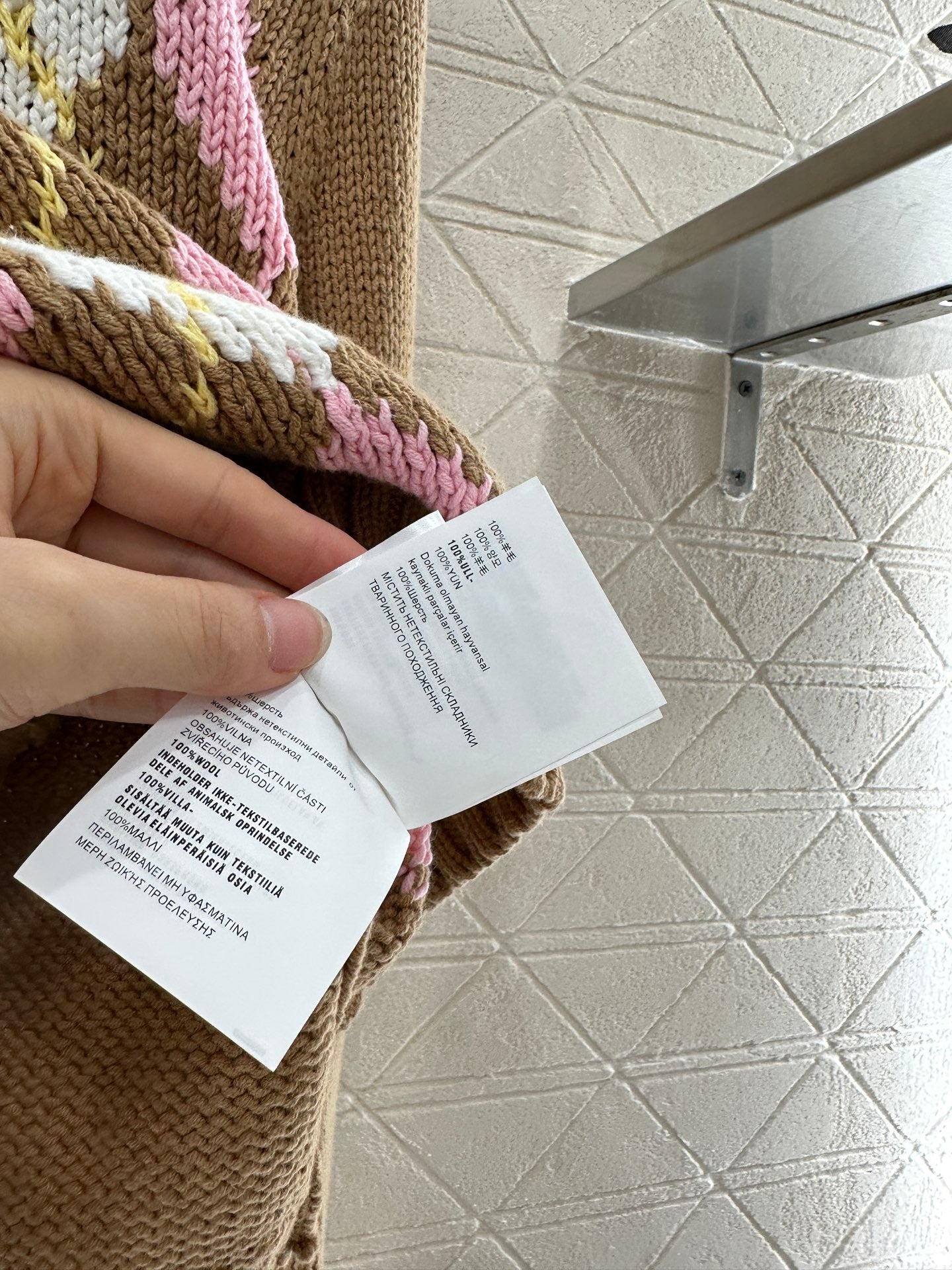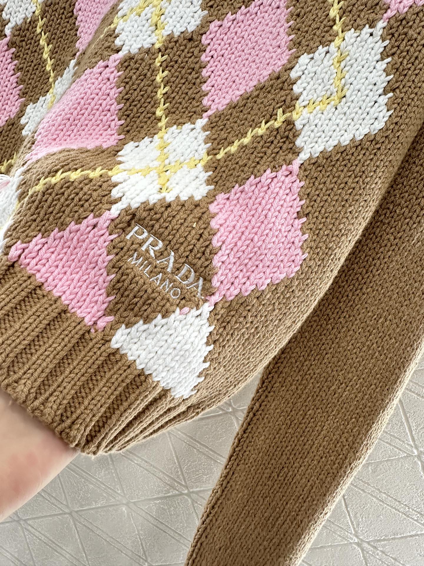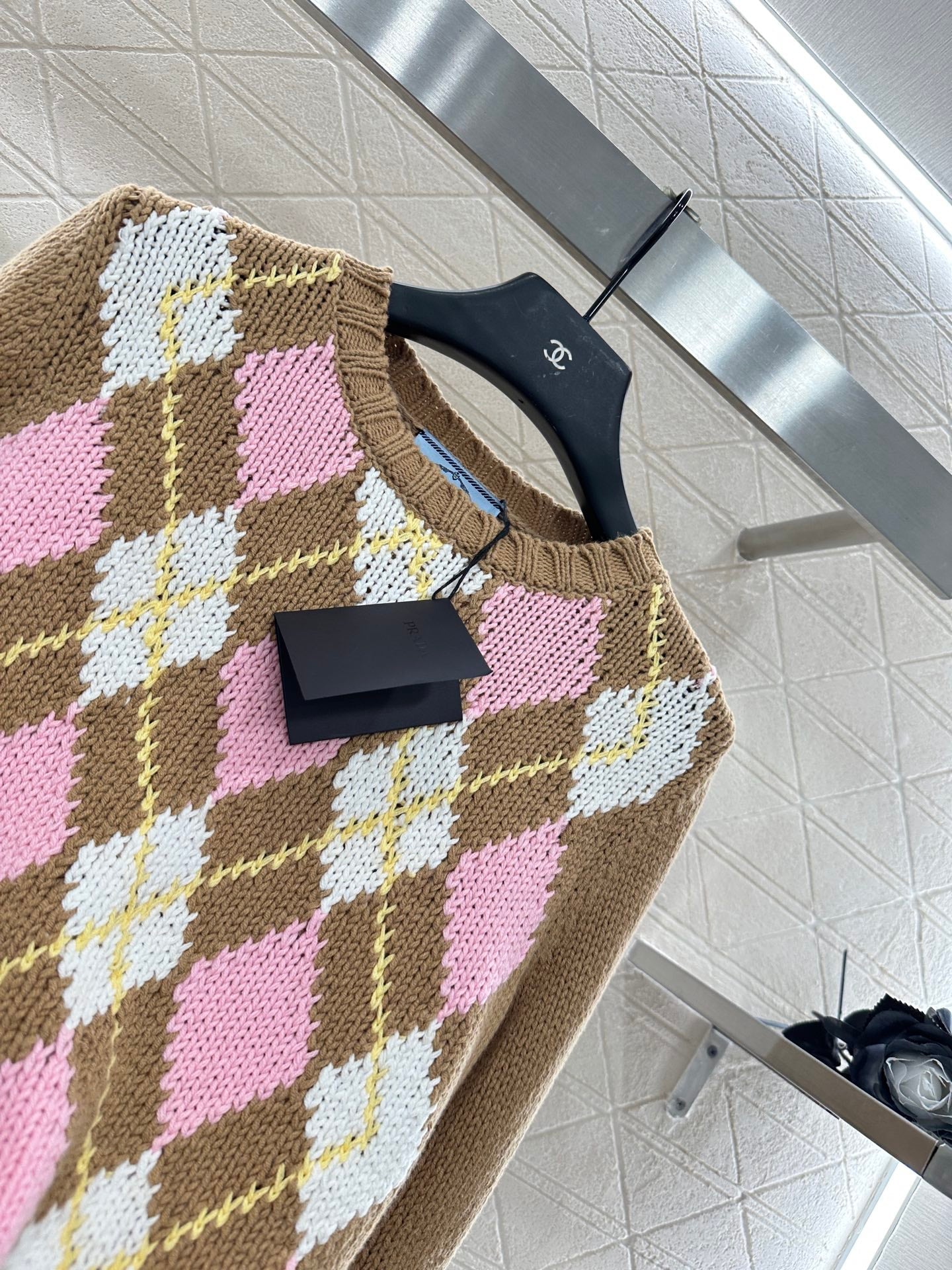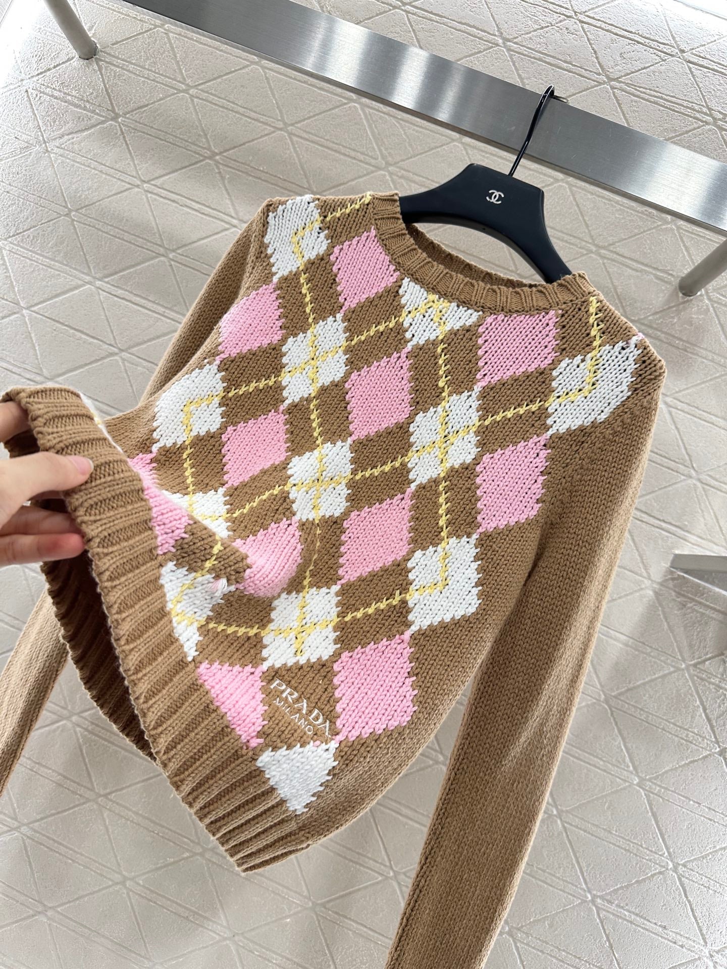 Wool yarn weaving texture delicate, comfortable to wear round neck shoulder knit sweater cut from the torso flat positioning distribution multi-color diamond grid staggered pattern leader mouth hem thread elastic edge full color matching rich waist side letter logo embroidery layer clear pattern inclusive of body shape