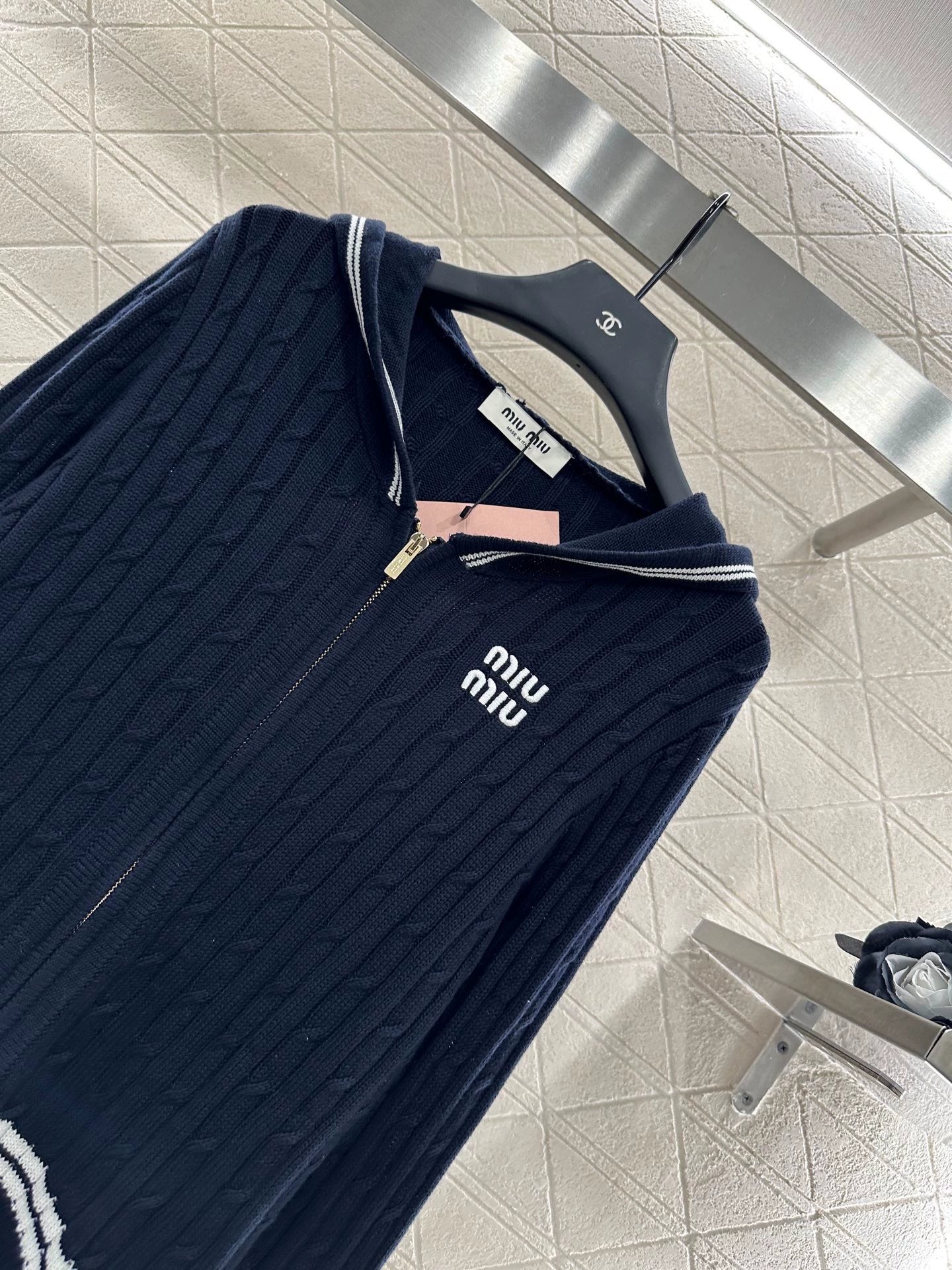 Wool yarn weaving is comfortable and stylish, full of texture, hooded zipper cardigan, vertical pit strip, Fried Dough Twists knitting stitch, dense, windproof and cold resistant effect, unique upper body, loose, gentle feeling, hem, sleeve stripes, interwoven with letters on the chest, embroidery pattern shows the brand's fashion charm, conventional slim fit, art school, full of fashion, focus on wearing foreign style, age reducing