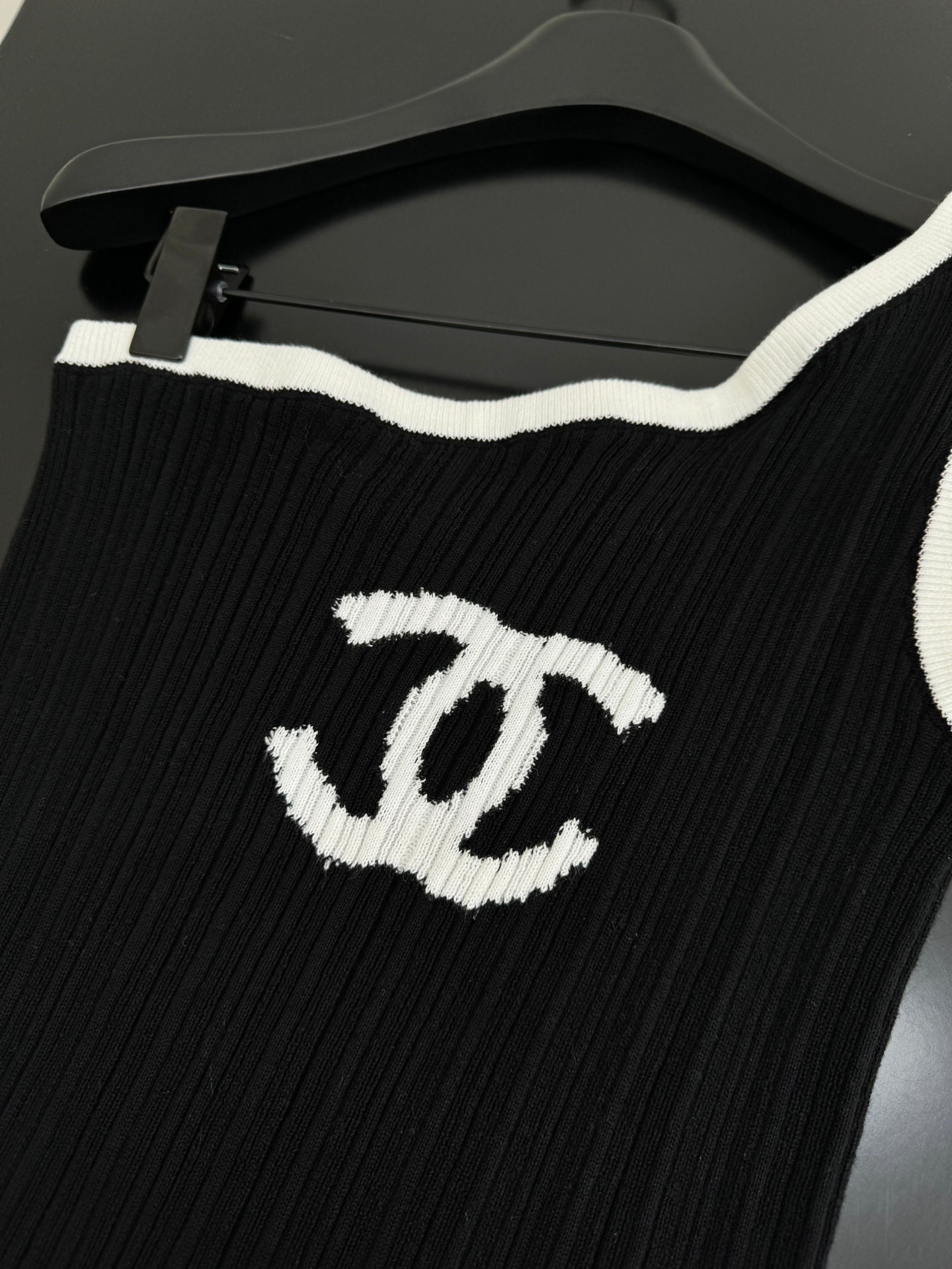 Custom-woven and dyed knitted craftsmanship Decorated with brand logo embroidery Off-shoulder design to modify the neck Contrast color ribbed trim Elastic version Thin summer item ❕