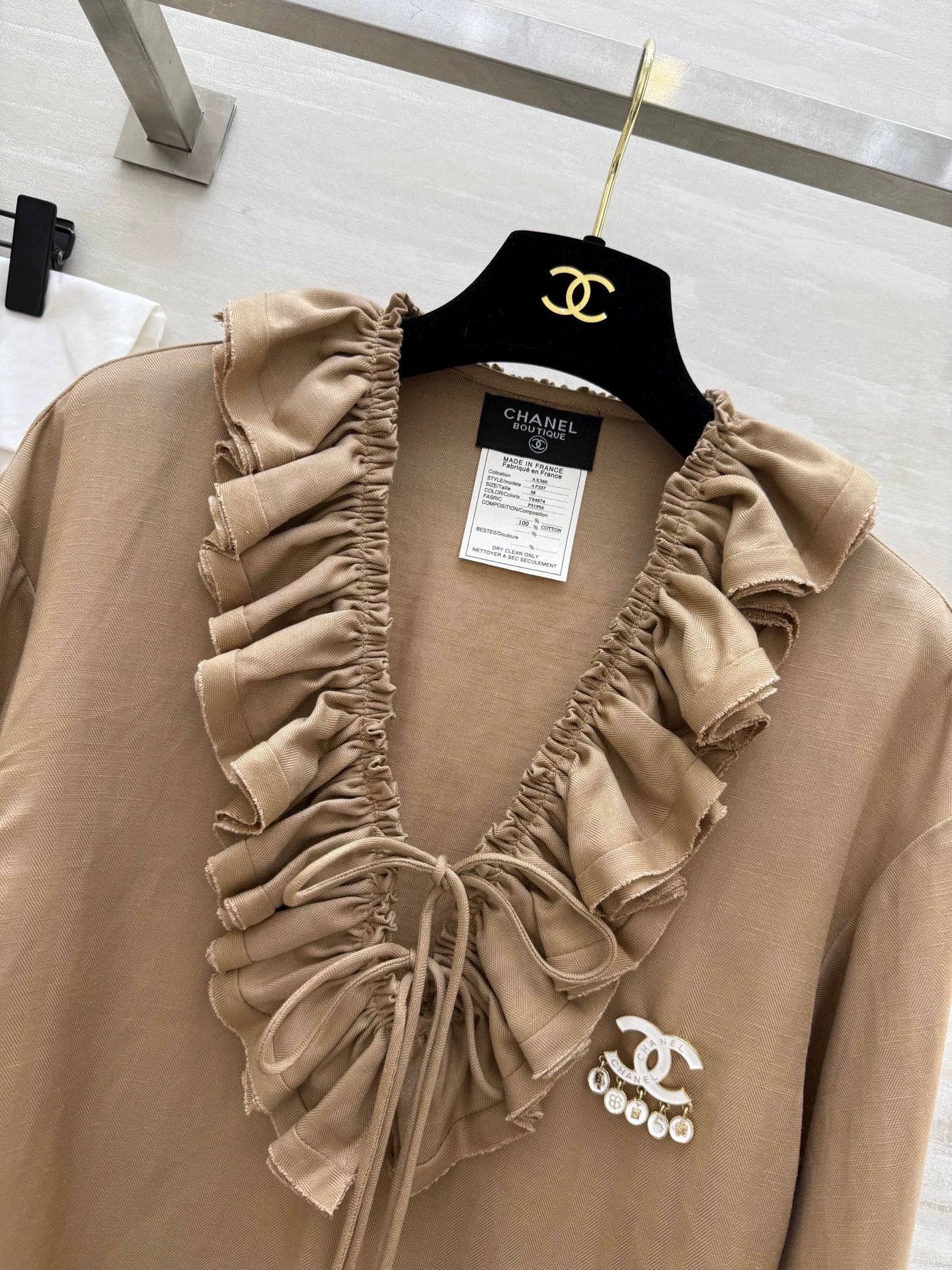 Retro and complex style, made of cotton and linen material, with hand torn edges and extremely three-dimensional folds. Hand tied with lotus leaf edges, it looks very slim and durable in both colors. One is linen brown, which is close to the natural color of linen, and the other is white. It looks great when paired with jeans alone. It is also very suitable for pairing with a skirt
