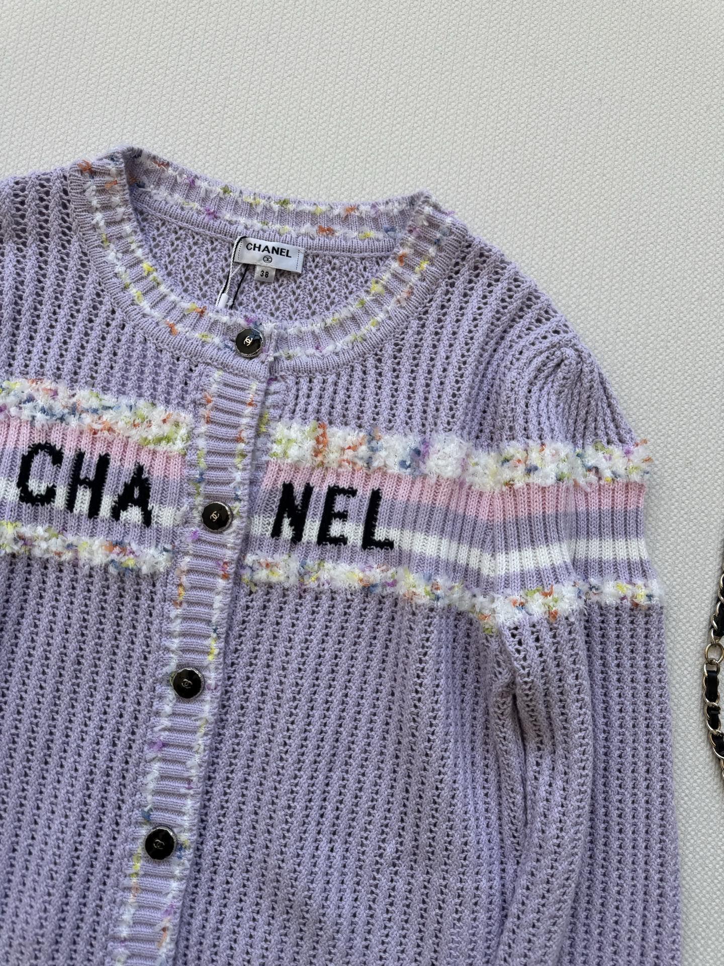 Classic round neck contrasting color design with letter logo and colorful jacquard embellishment, simple yet fashionable, comfortable and breathable fabric