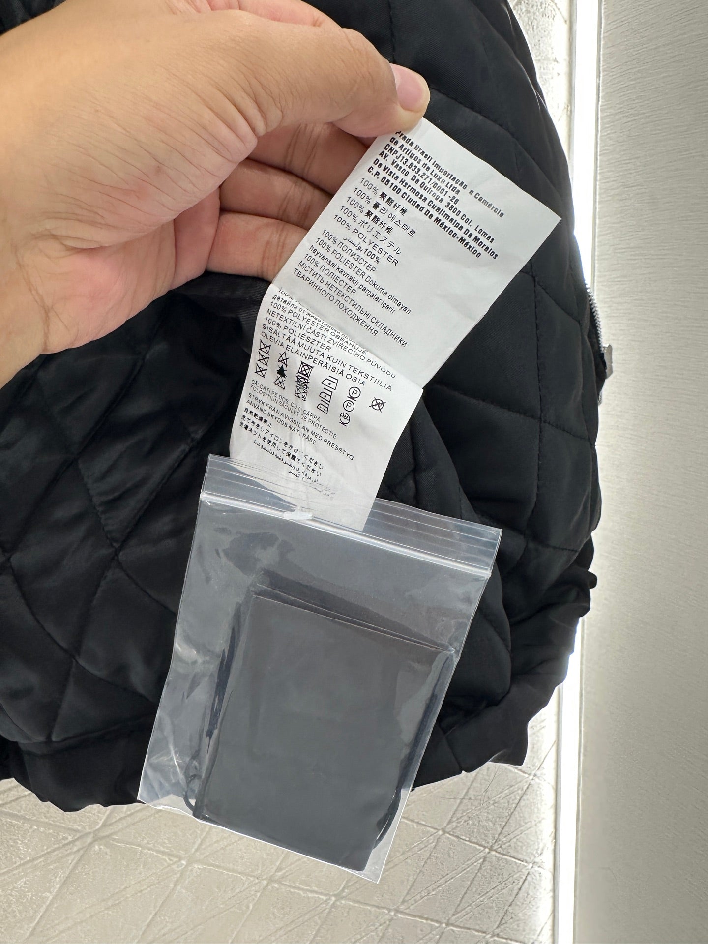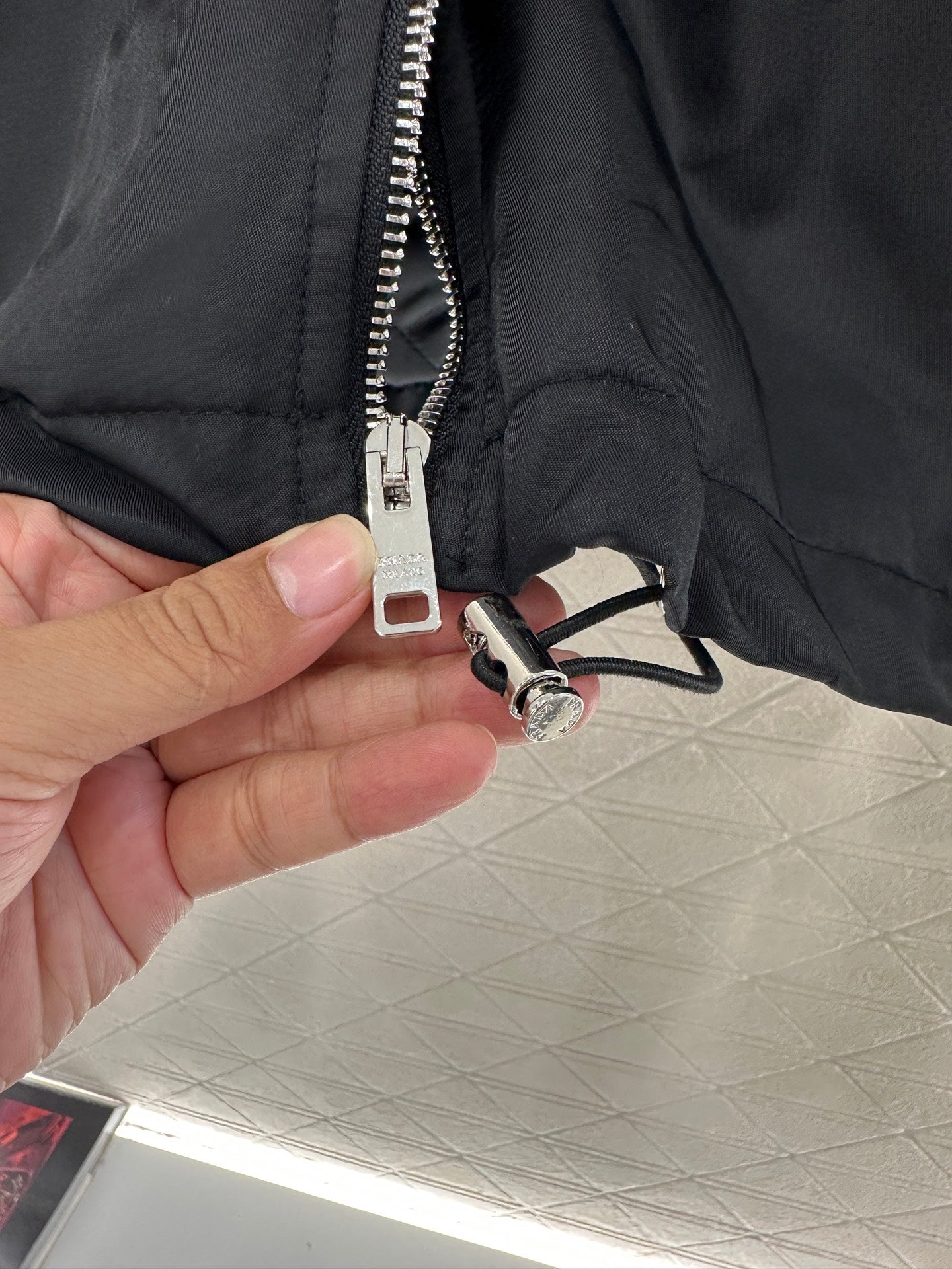 Custom-made YB imported environmentally friendly recycled nylon material, with a lustrous texture and a crisp and stylish look. This lapel zipper jacket and skirt set features a loose and casual jacket with a diamond-embossed lining and cotton-padded treatment for enhanced warmth. A three-dimensional triangular metal letter logo on the chest highlights the brand's style. Paired with the same series skirt, the slightly A-lined skirt and the slimming trouser legs create a full and stylish look.Meet a variety of needs and match them together, fashionable and trendy.