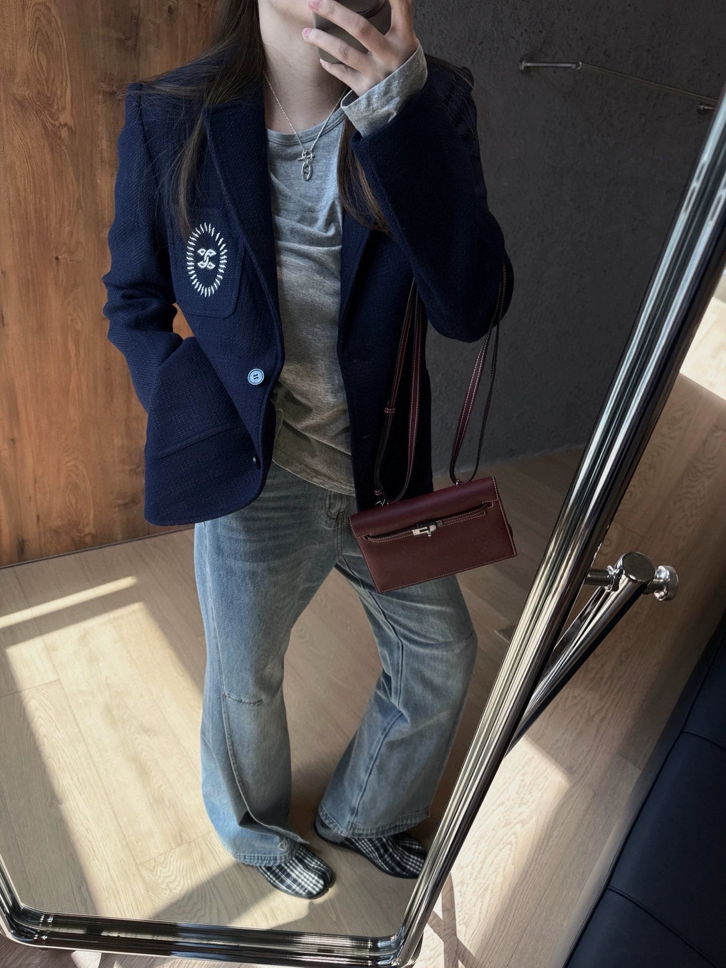 Wool texture grid fabric, exquisite embroidered logo on the chest, enhances overall temperament