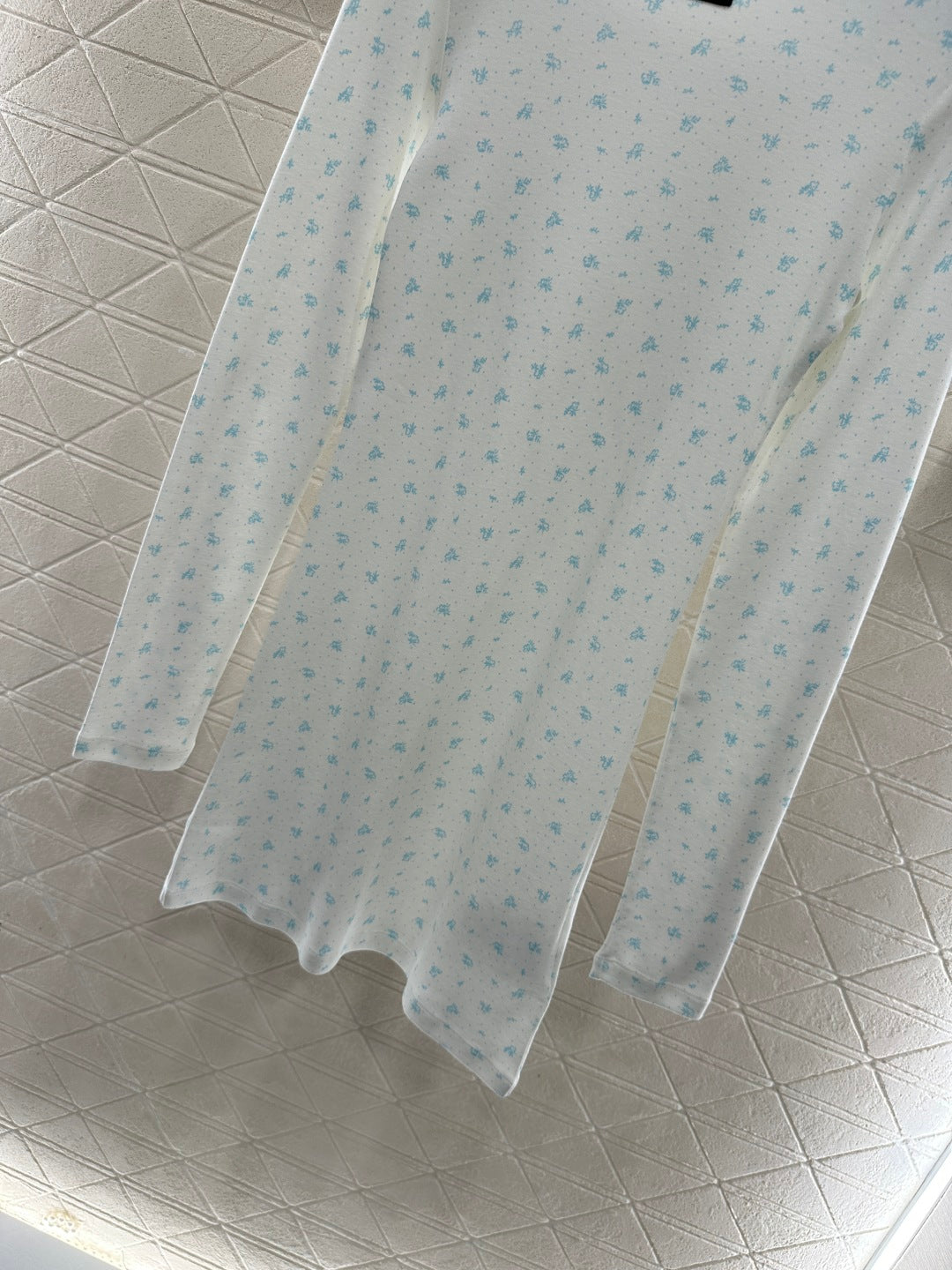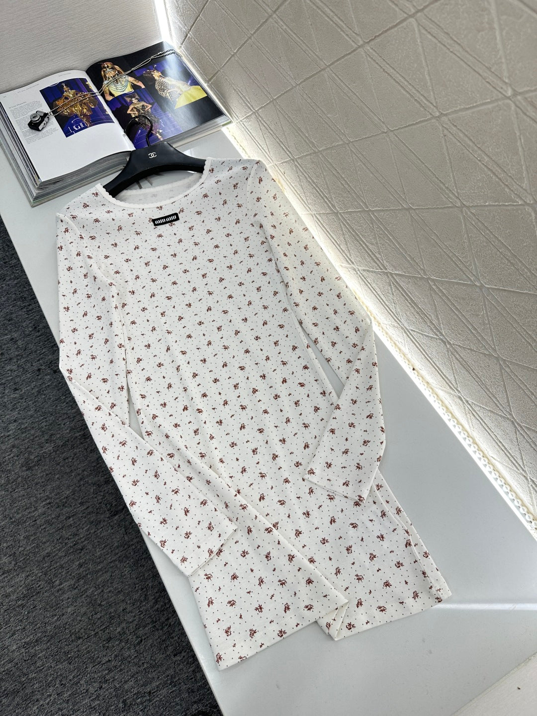 Made of all cotton material, clear and comfortable, full of elasticity, round neck long sleeved dress cut, collar and cuffs threaded with wavy lace edging, solid color base throughout the body ➕ The polka dot floral pattern is full of youthful beauty, decorated with letter logos on the chest to get rid of boring monotony. The slim fit cut, combined with the three-dimensional cutting of the chest, waist, and abdomen, fits the body shape, making the outfit look slim and high-end, showing versatility. The moderate length is a must-have for daily base in autumn and winter, fashionable and stylish