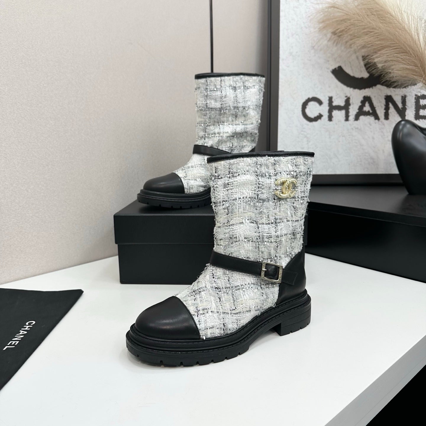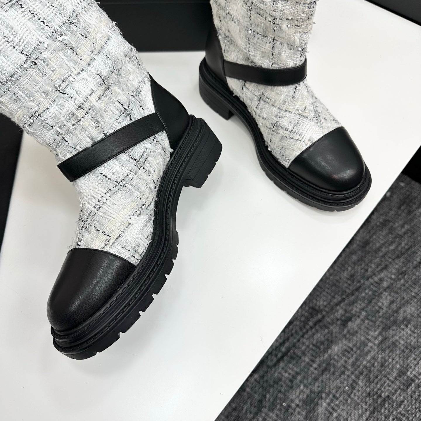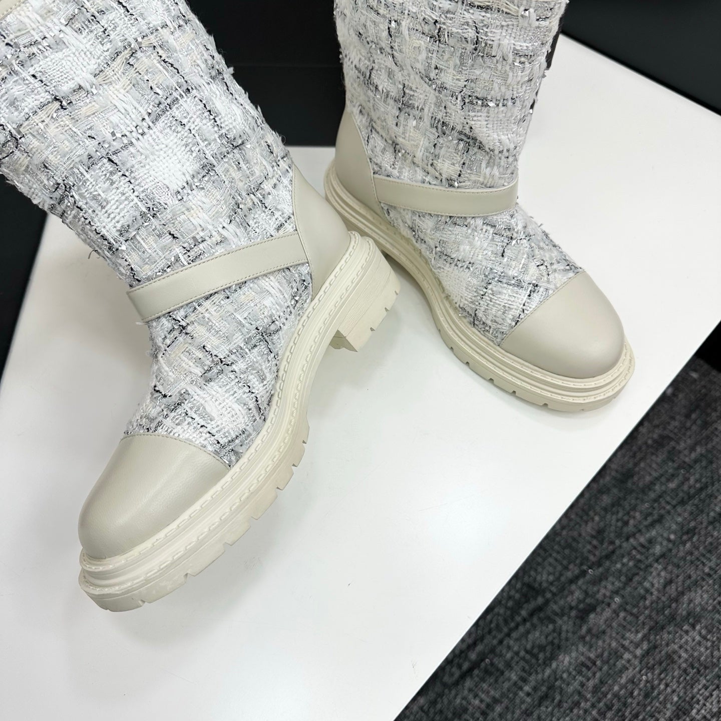 25 Cowhide and cloth lined mid calf boots