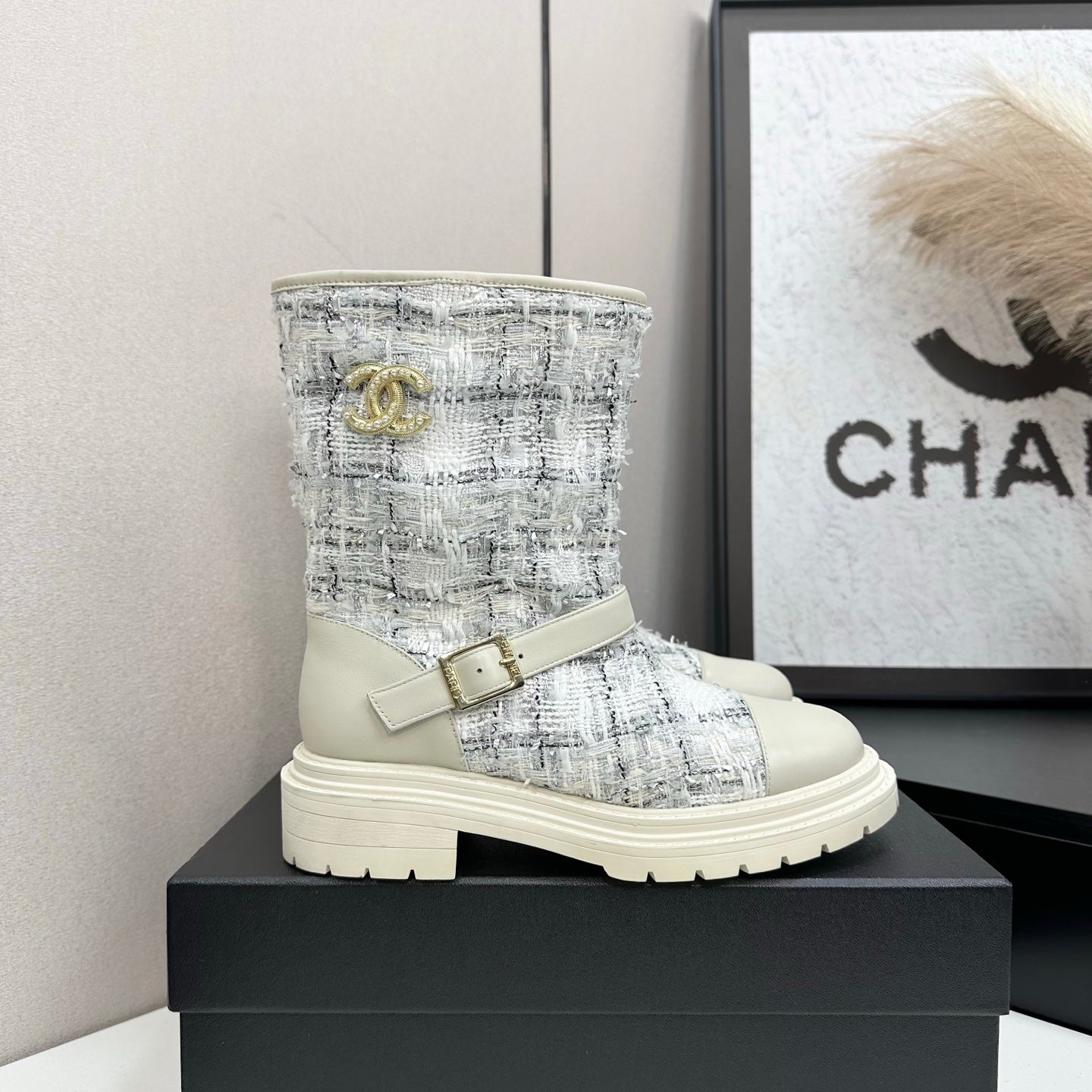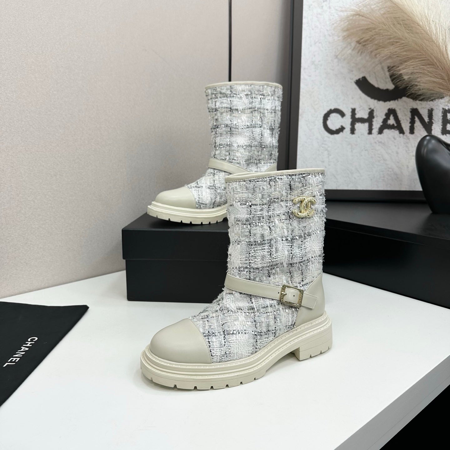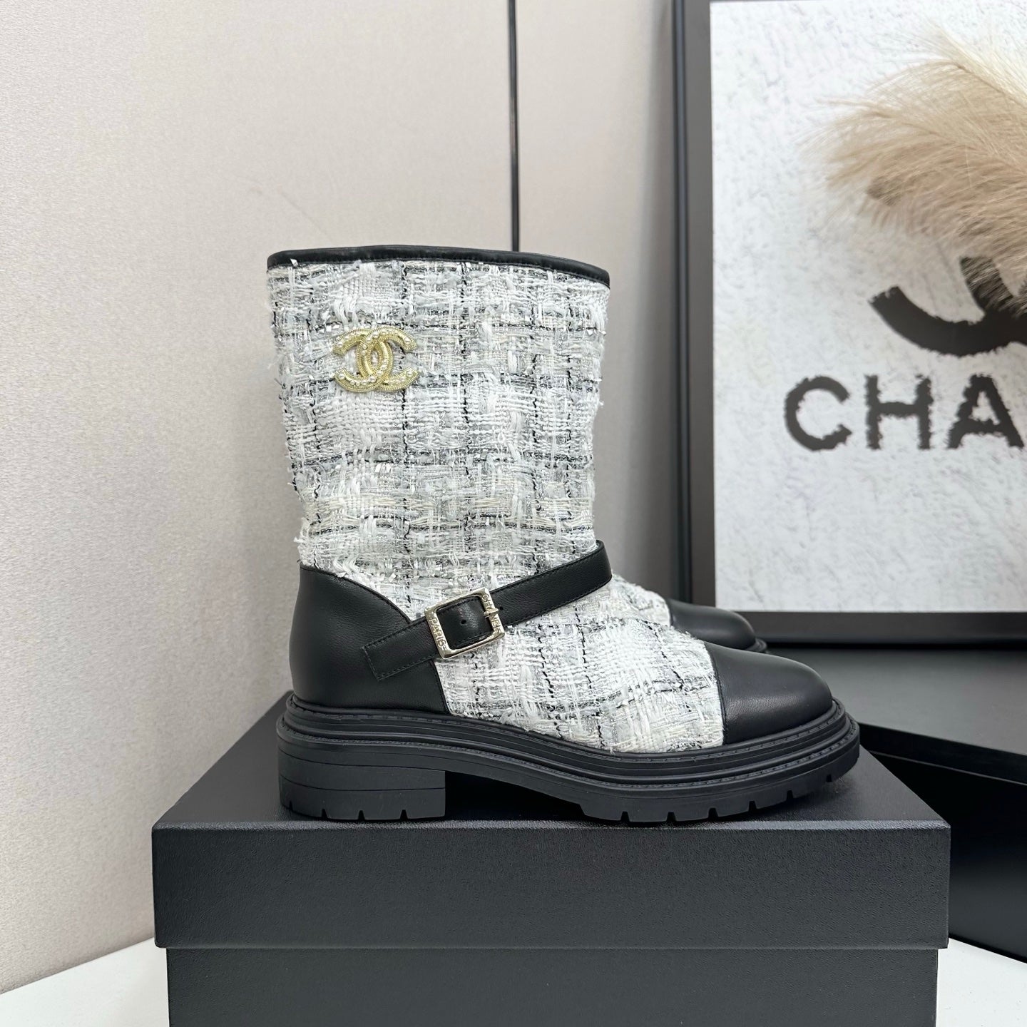 25 Cowhide and cloth lined mid calf boots