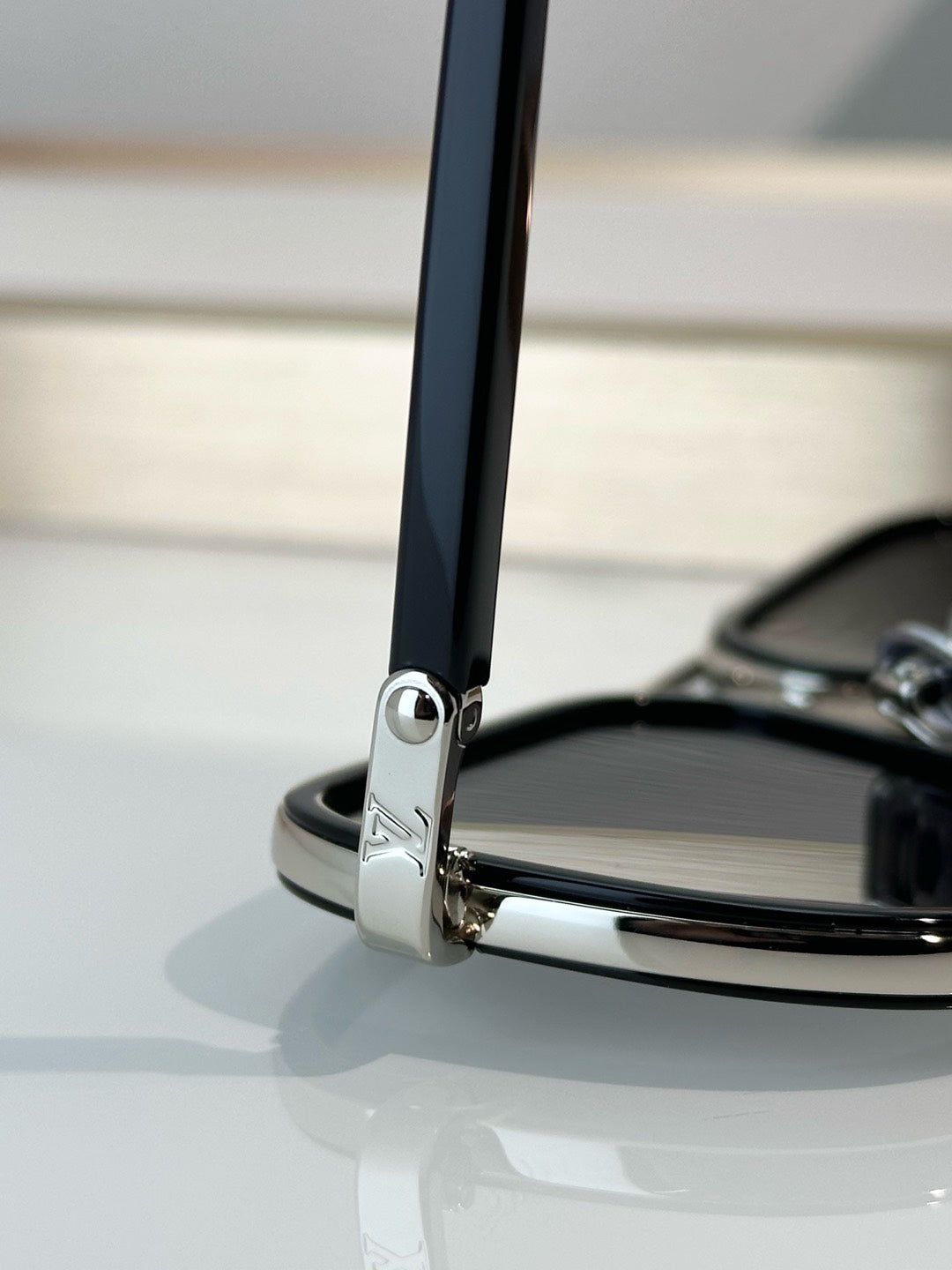 Frog Mirror ~ The silver finish on the acetate lens and frame adds a modern touch to the classic silhouette, while the initials engraved on the hinge are the brand's logo