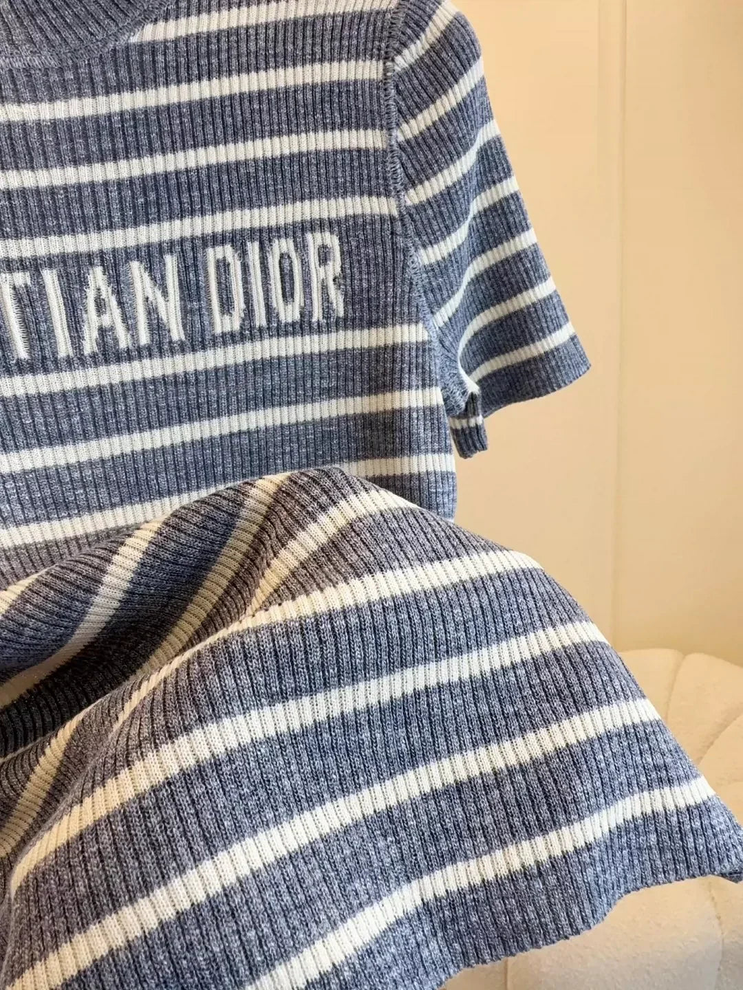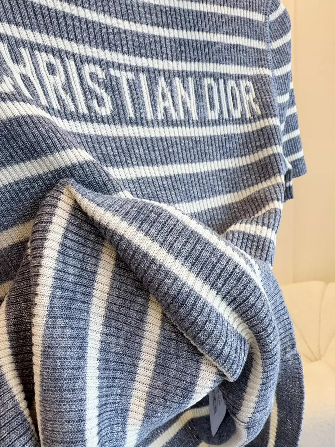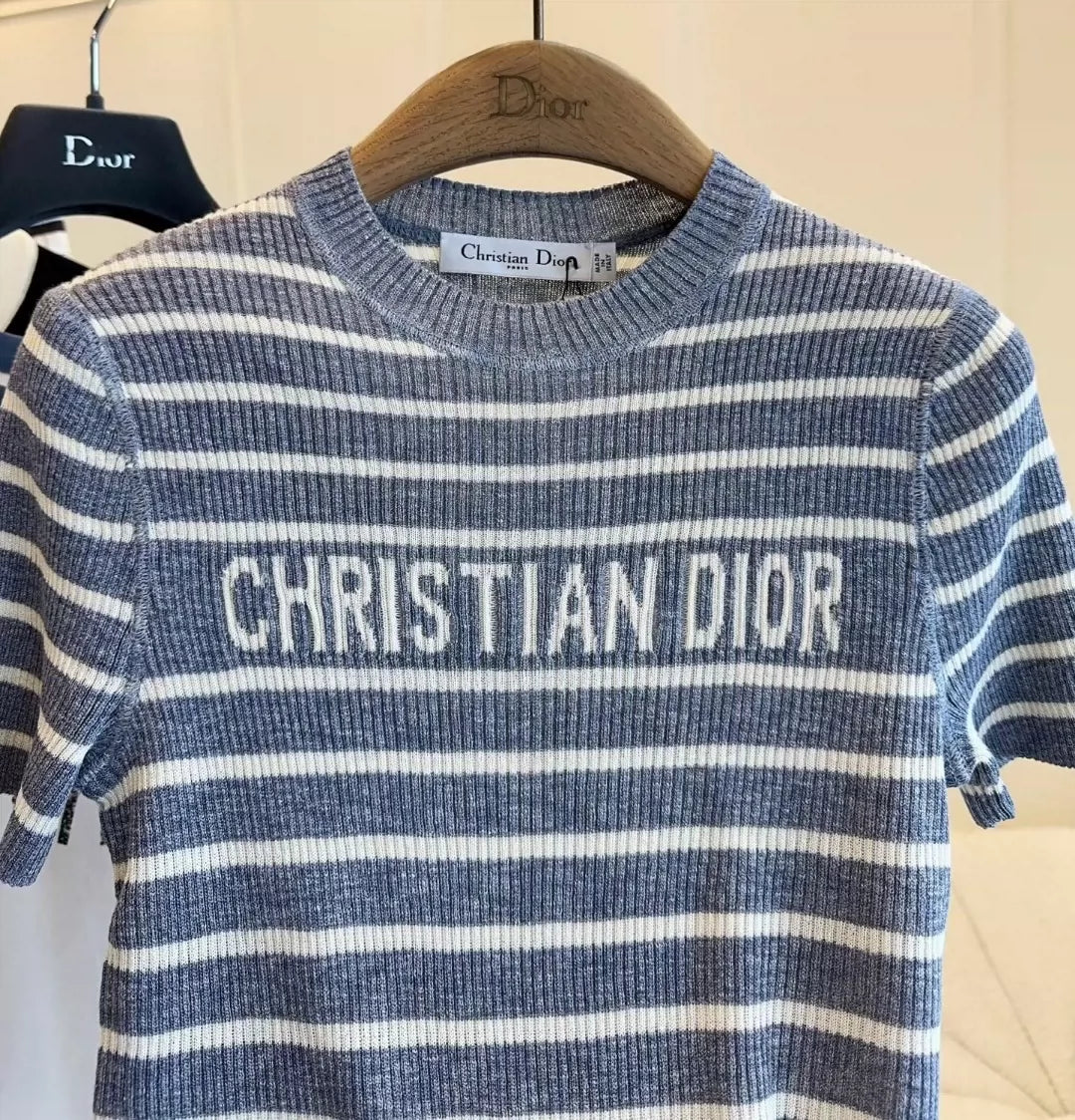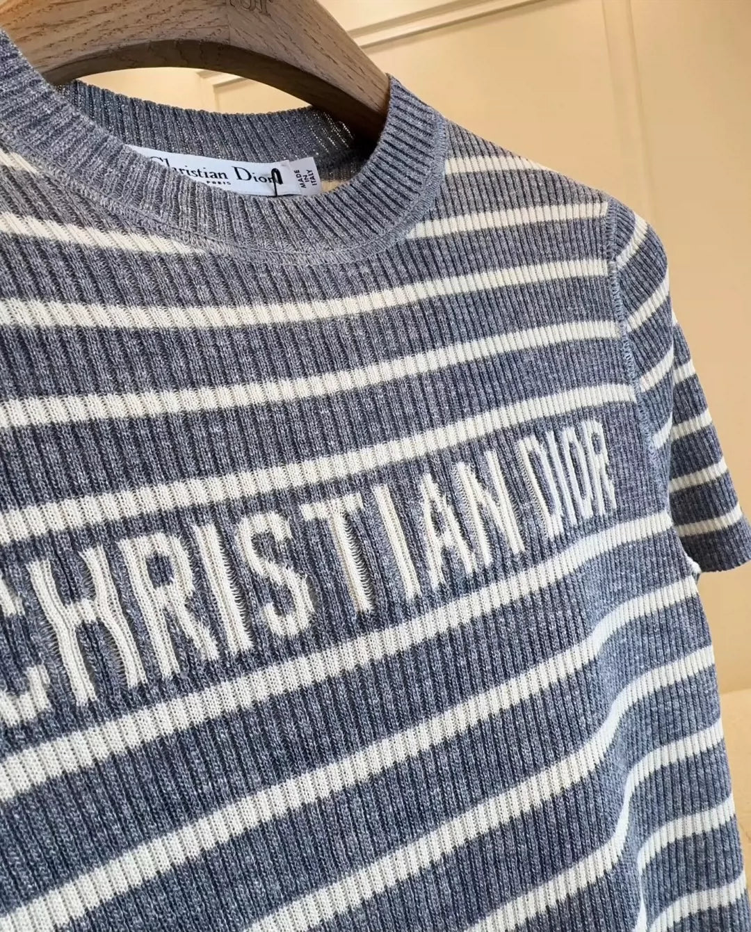 25 Summer new striped logo intarsia striped short-sleeved knitted top