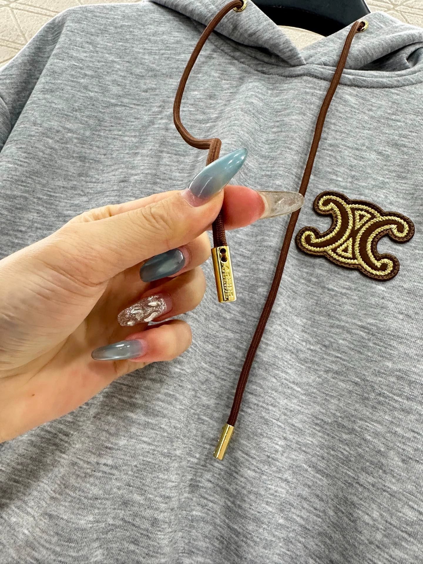 Made from pure cotton, soft and gentle on the skin, it resists deformation and pilling even after repeated washing. The hooded long-sleeve sweatshirt features a stylish, relaxed cut, adorned with an Arc de Triomphe logo on the chest that instantly elevates the brand's aesthetic. The loose fit combines with drawstrings and ribbed cuffs for a dynamic touch. Paired with matching elastic-cuffed sweatpants, featuring wide-leg straight cuts that flatter the legs for a cohesive look. The back pockets with logo details echo the hoodie's design, adding visual interest. This relaxed, stylish set is an essential early fall ensemble and a go-to for everyday casual wear.