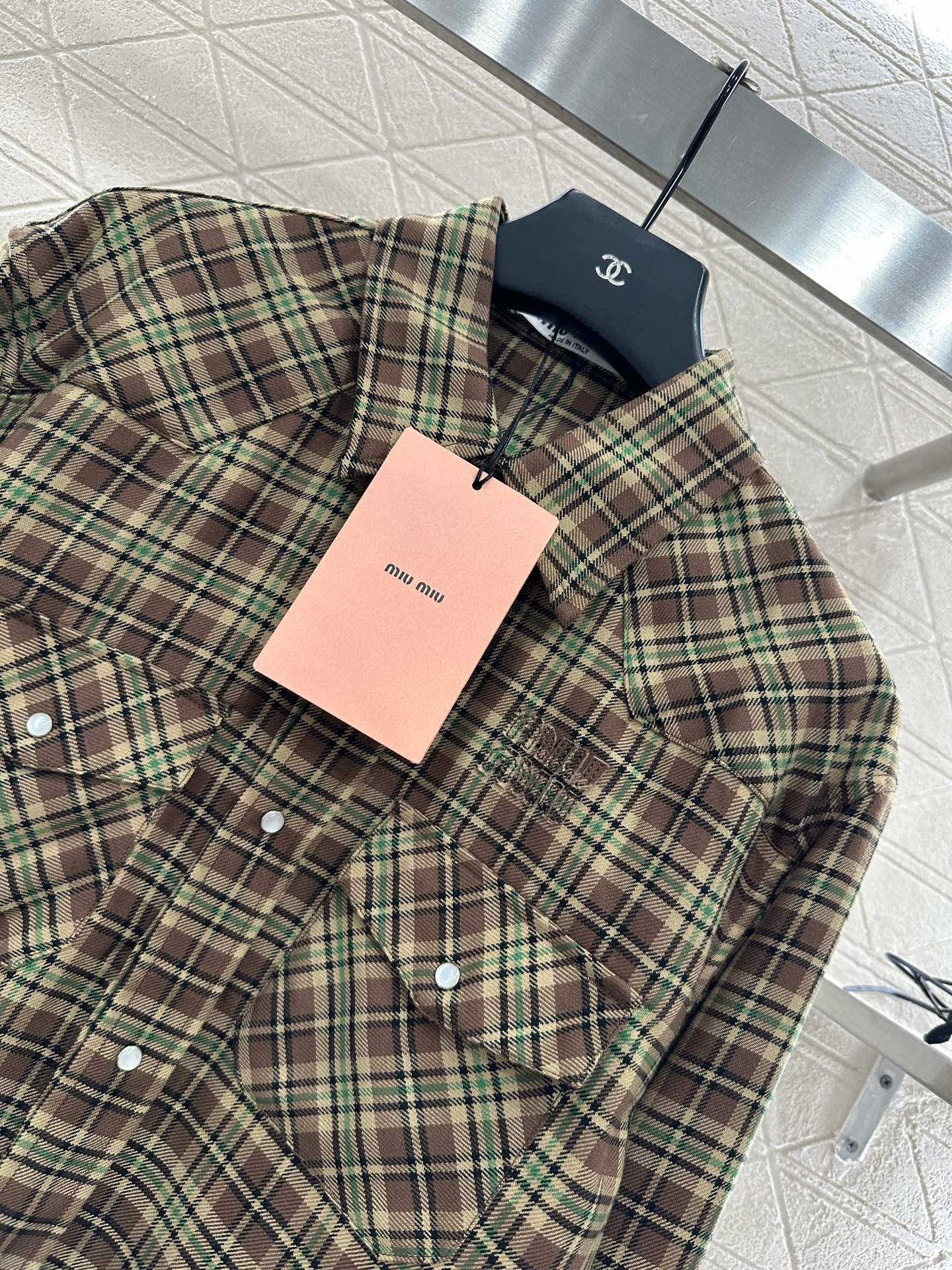 Customized YB imitation wool material, high-quality texture, smooth and comfortable, oversized silhouette mid-length shirt skirt set, creating a relaxed holiday feeling, the whole body is covered with brown and green two-color plaid, simple and fashionable, with chest flap pockets to brighten the design, easily showing style and style. Paired with the same series of skirts, the waist drawstring is easy to adjust, the ultra-short skirt is slimming and leg-lengthening, and the embroidered three-dimensional logo on the hem echoes the effect. Wearing as a set makes you look younger and more fashionable, and it is also very good to wear separately.