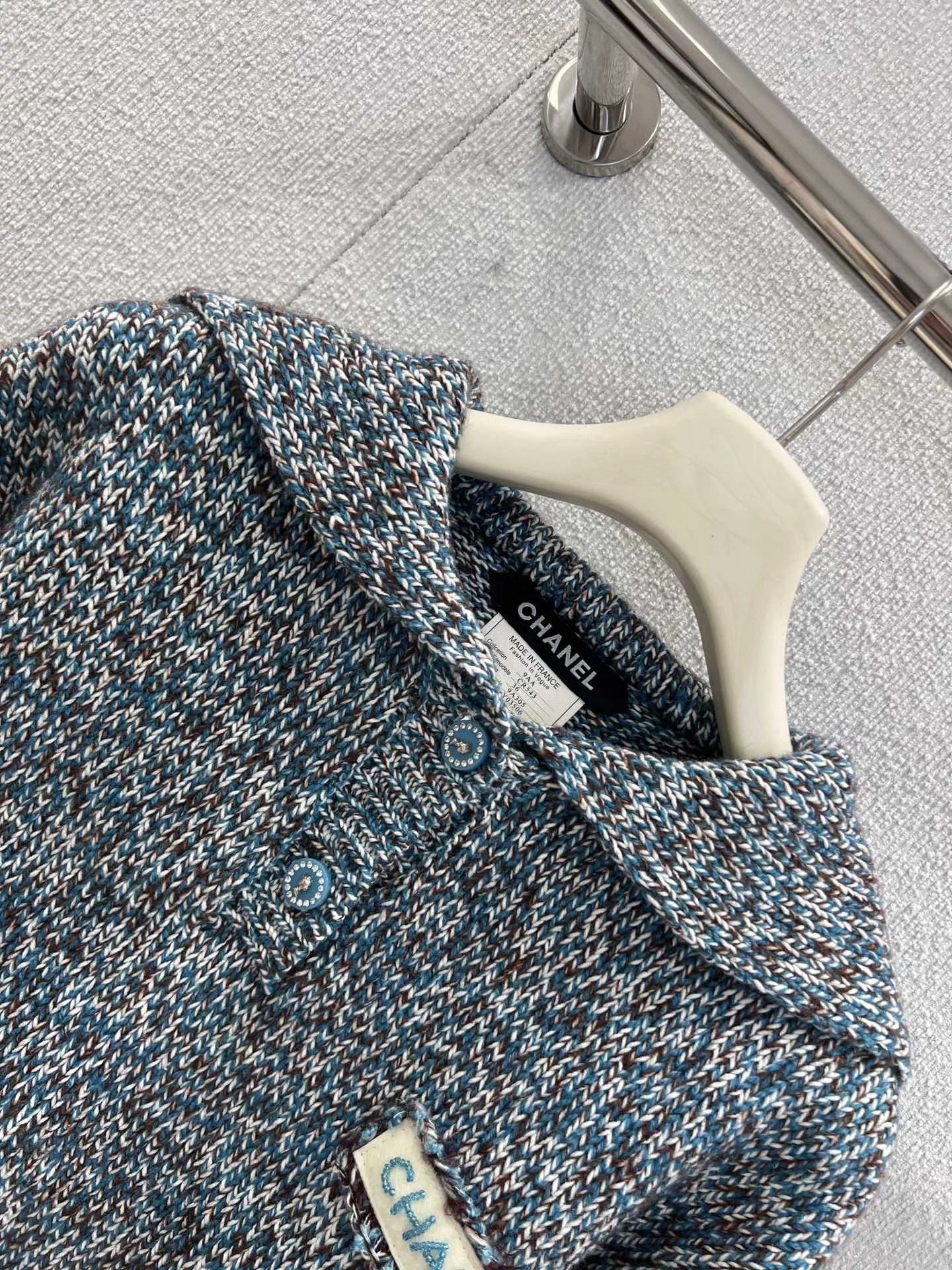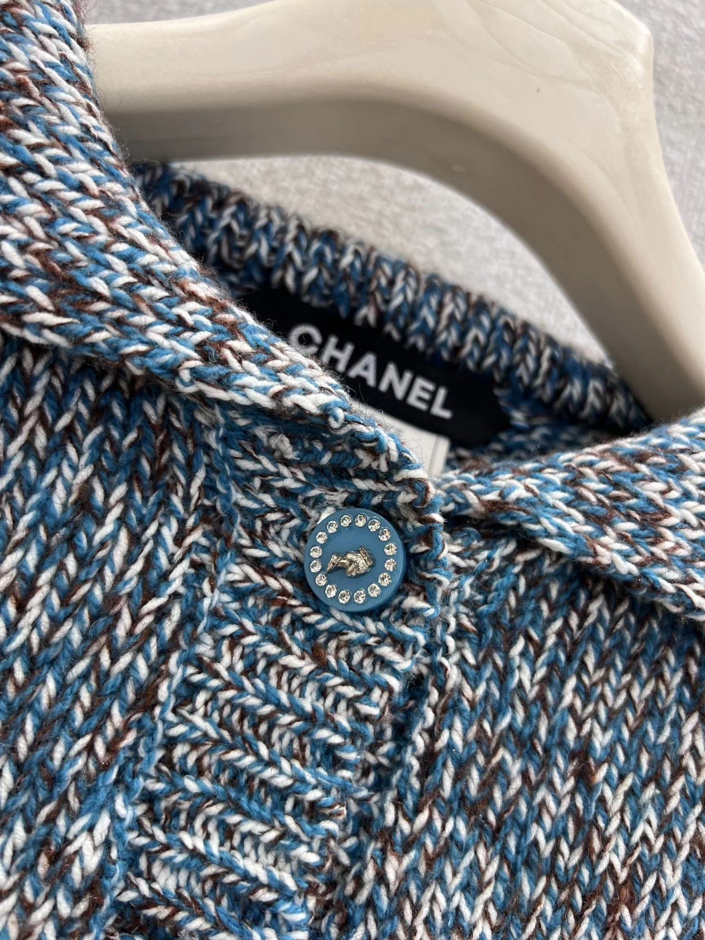 Knitted with wool blended color dot yarn, it feels soft and warm to the skin, while also providing a fluffy air feel. The classic navy collar exudes a French retro atmosphere, while the wide neckline decorates the shoulder and neck lines; Half open collar with same color buttons, simple yet exquisite, short cut with a sharp and tall look; Combining handmade beaded logos with mixed color knitted textures, it is a premium item in autumn and winter wardrobes that combines artistic and practical qualities